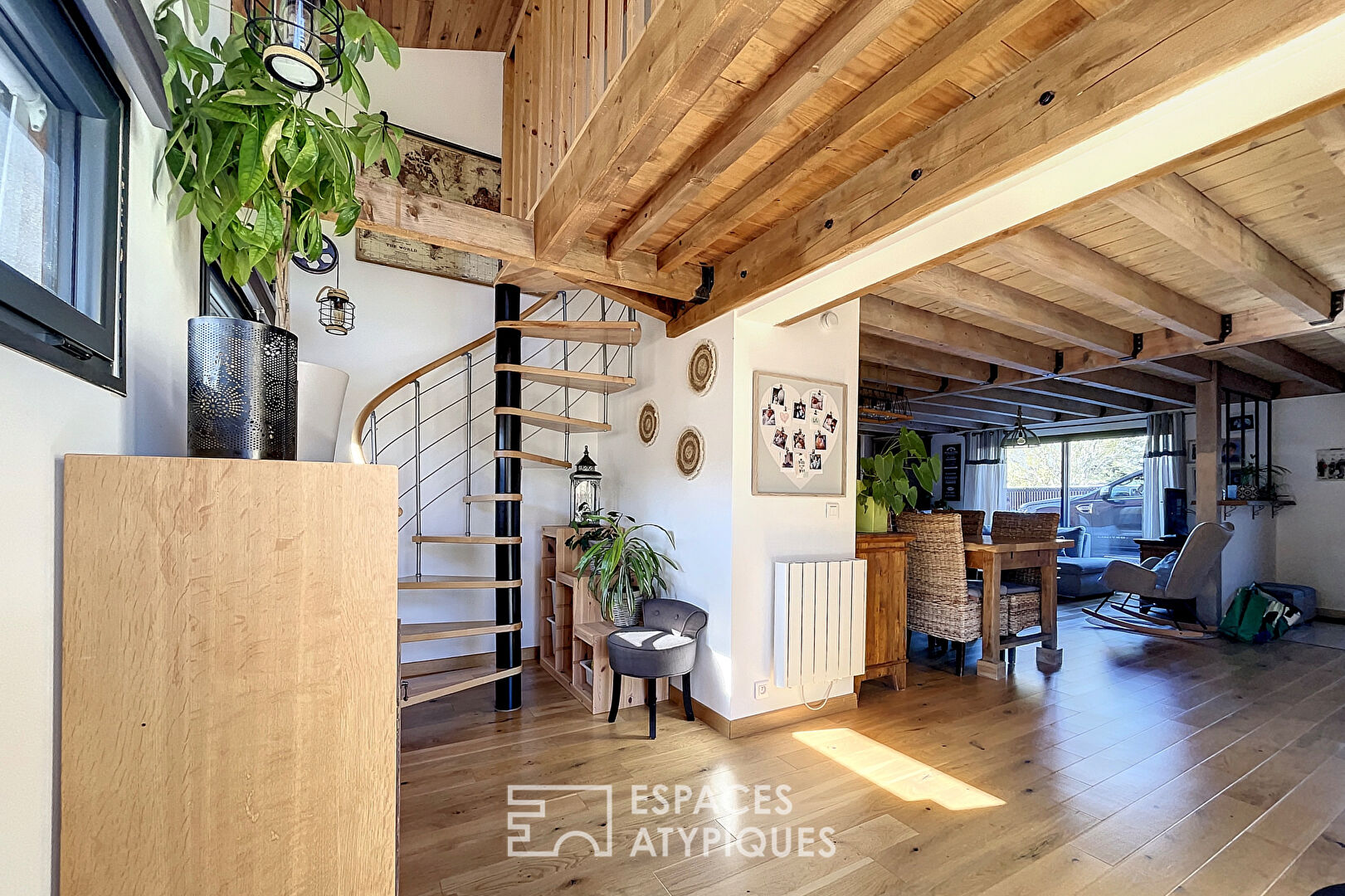 A seulement quelques kilomètres des villes de Saucats et de La Brède, à proximité immédiate d’un arrêt de bus, dans un environnement serein, cette maison de 140 m2 a été rénovée par un ébéniste de métier, éprit d’une grande passion pour le bois.