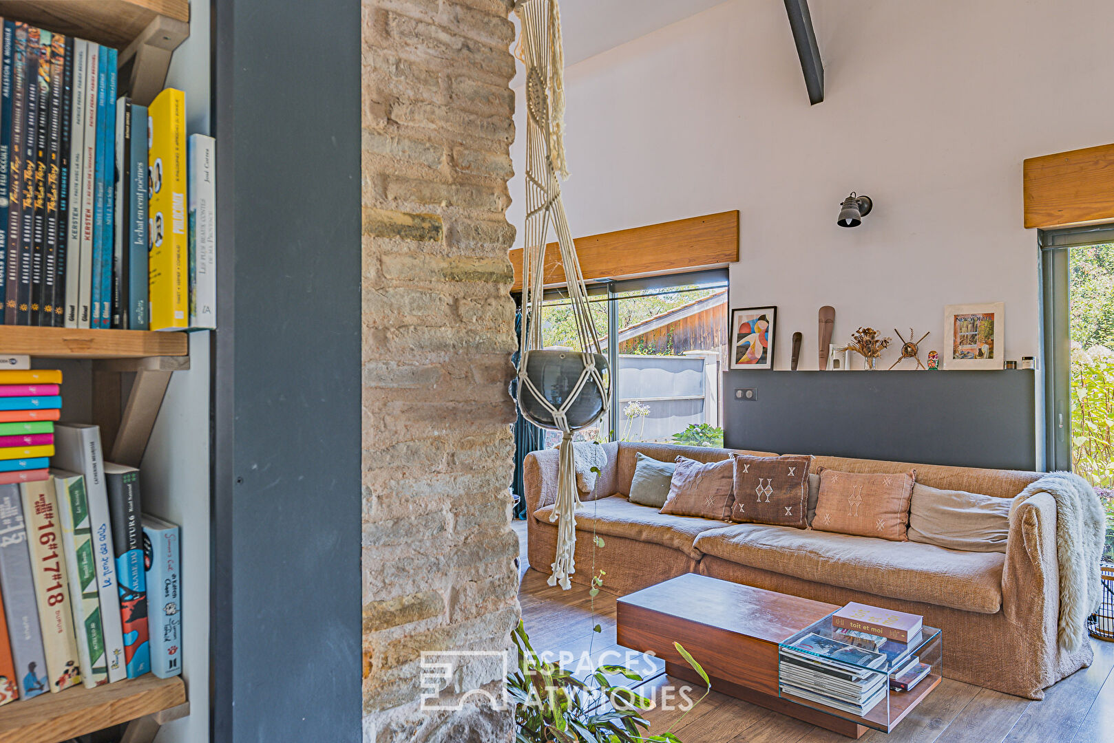 Dès l’entrée, les volumes s’expriment pleinement. La pièce de vie traversante, baignée de lumière, se déploie dans une atmosphère chaleureuse et conviviale. Salon et salle à manger dialoguent naturellement avec une cuisine aménagée et équipée, pensée comme un véritable lieu de partage. Les larges ouvertures prolongent l’espace vers l’extérieur, offrant une continuité fluide entre la terrasse, le jardin et la piscine.