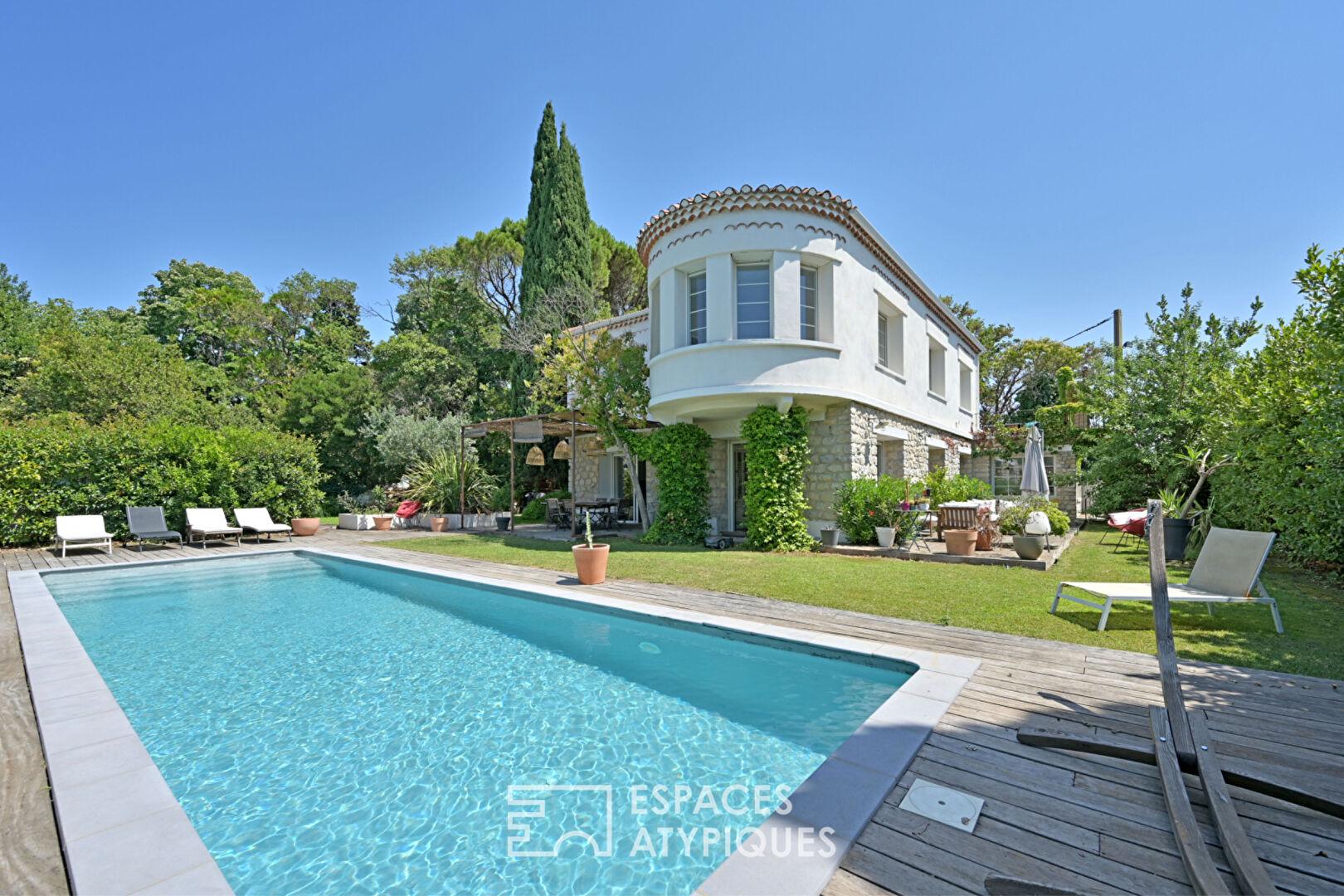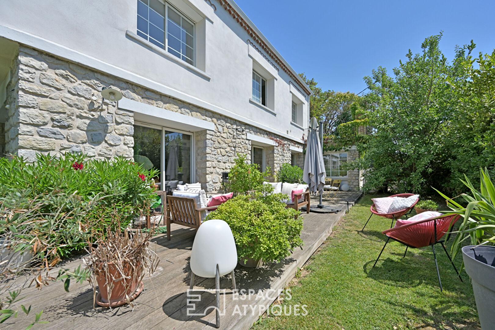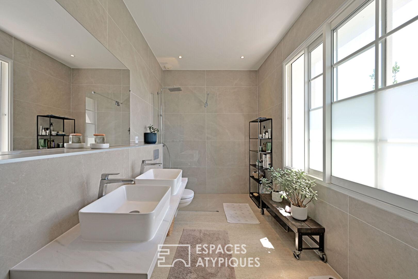 Demeure des années 1950 rénovée avec marbre et pierres apparentes dans un domaine sécurisé