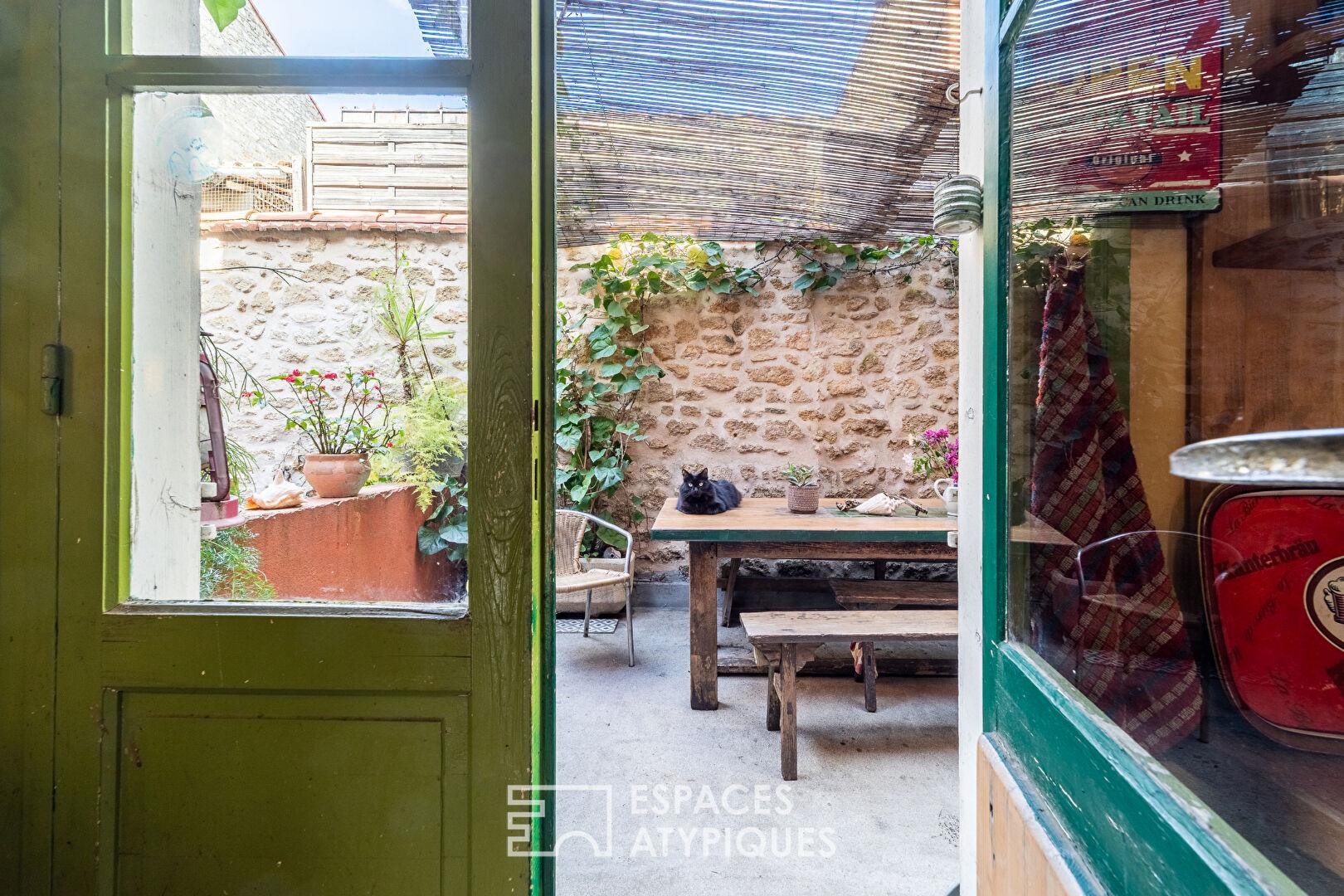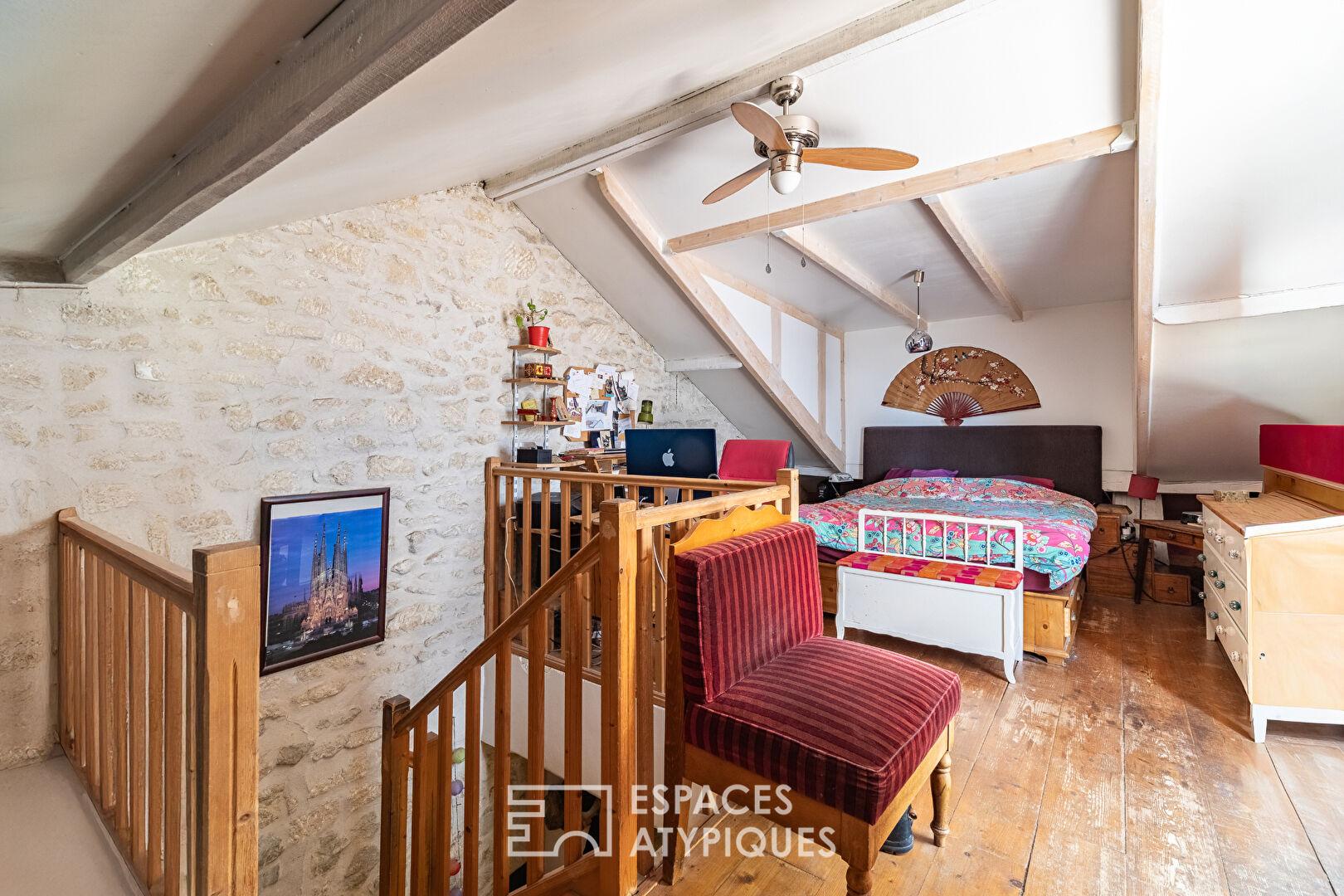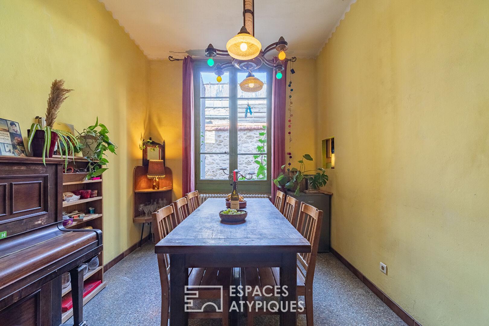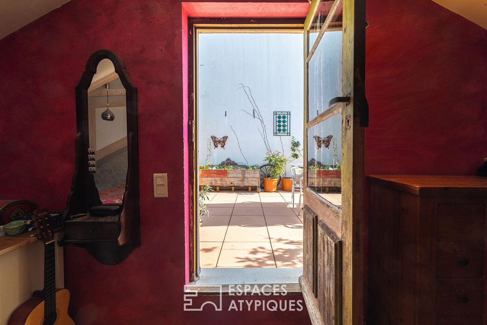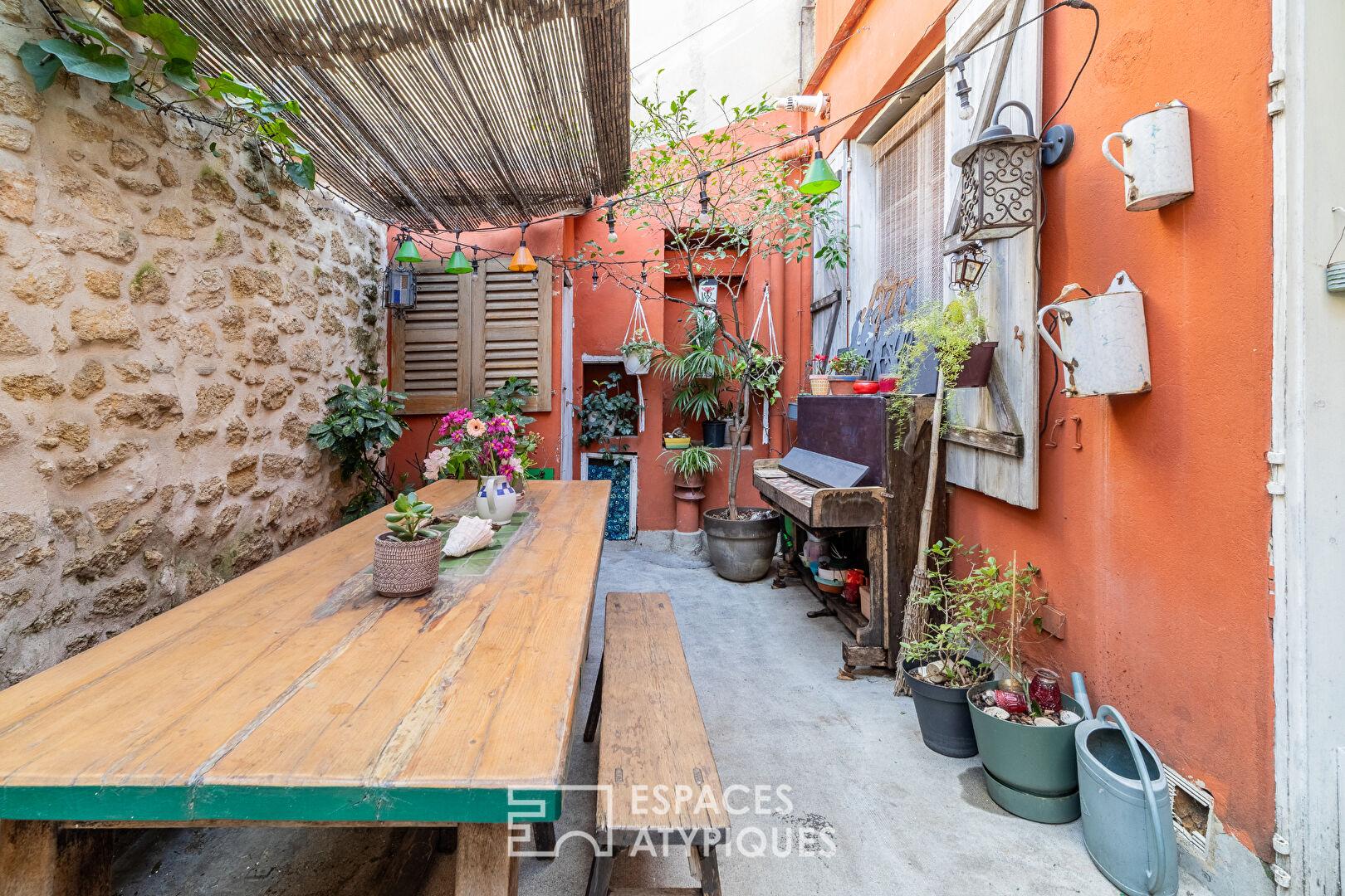 Érigée de façon optimisée, elle dispose de deux terrasses successives totalisant plus de 55 m² et d’une cour intérieure, offrant un potentiel rare pour les amateurs de biens de caractère et de volumes anciens.