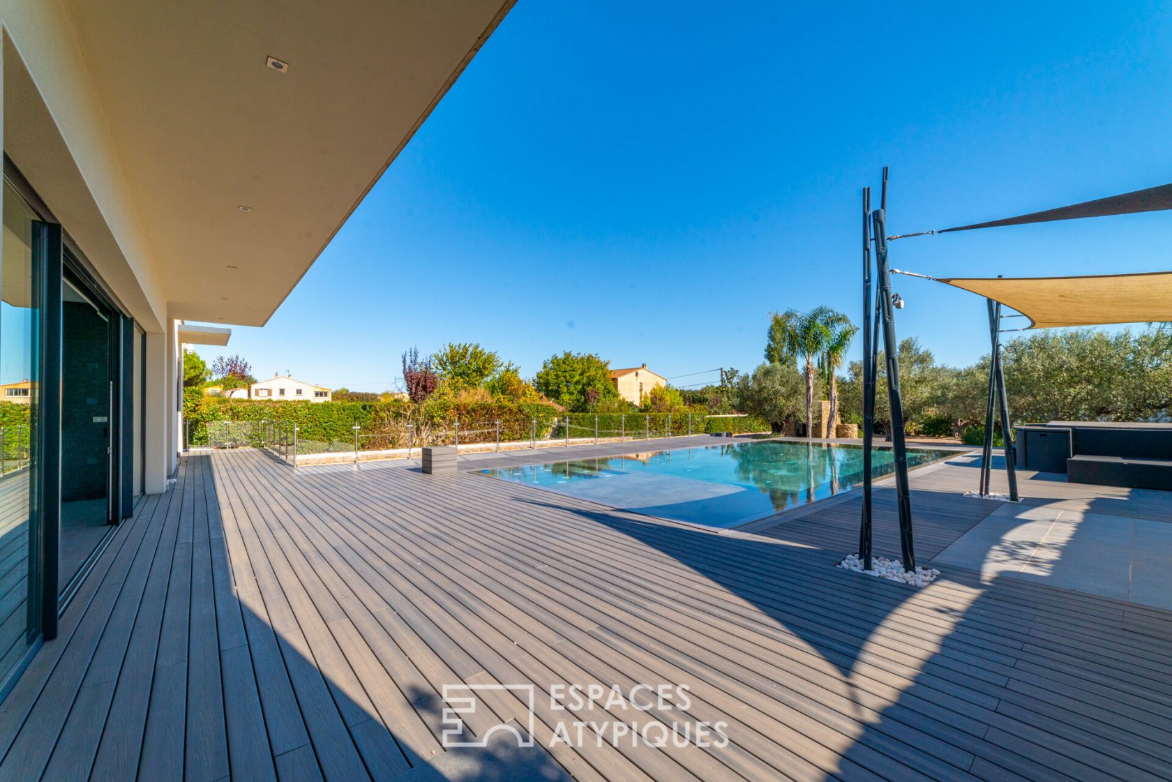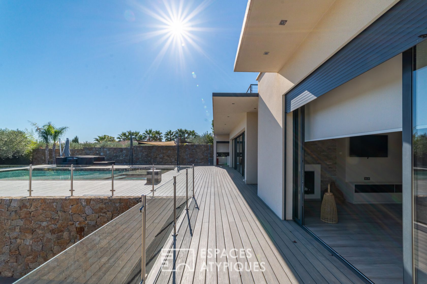 À 15 minutes de Pézenas et 35 minutes de Montpellier, dans un secteur calme et verdoyant, cette superbe villa de 305 m2 est implantée sur un terrain de 2000 m2.