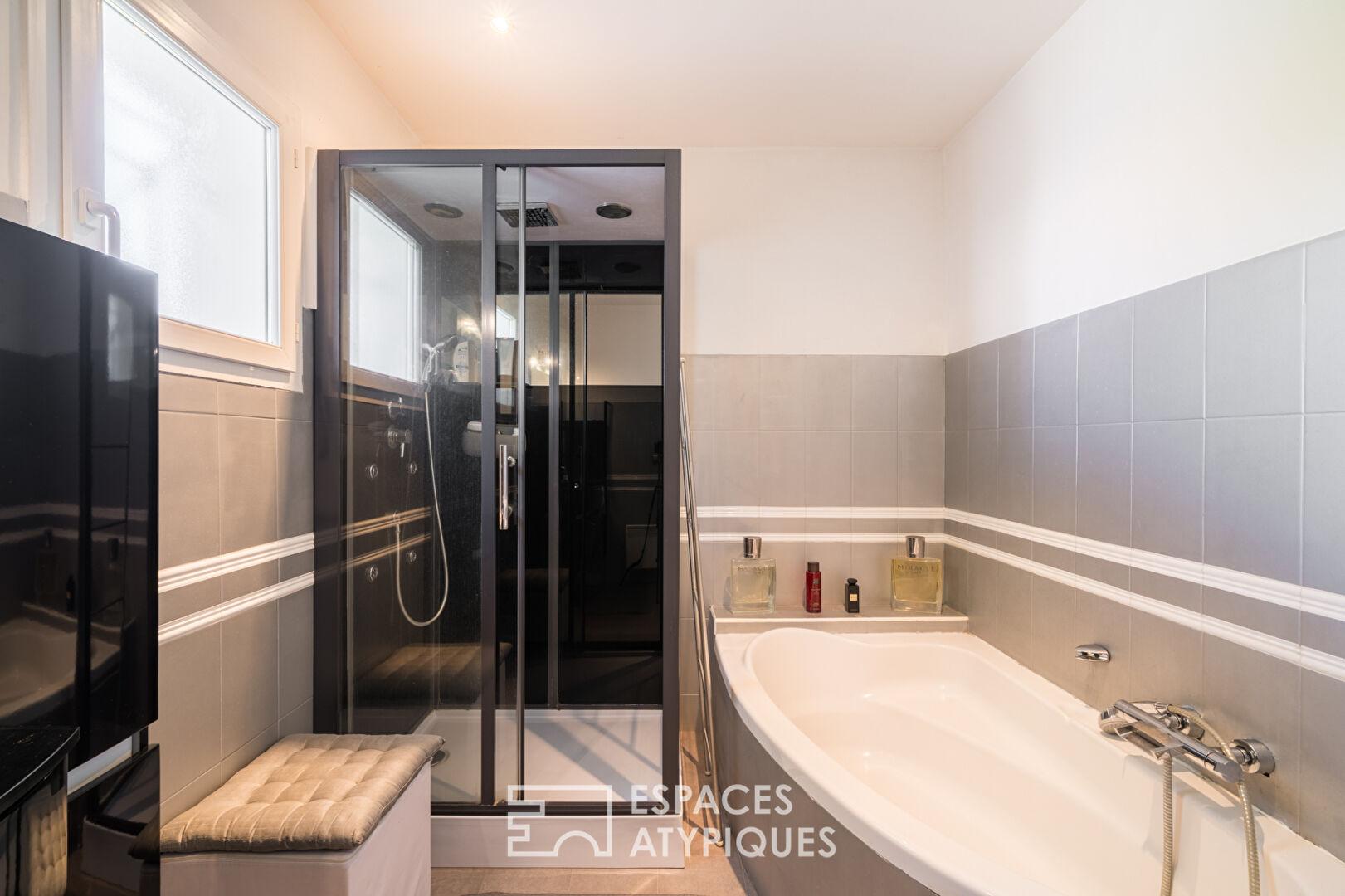Une salle de bain avec baignoire et douche italienne.