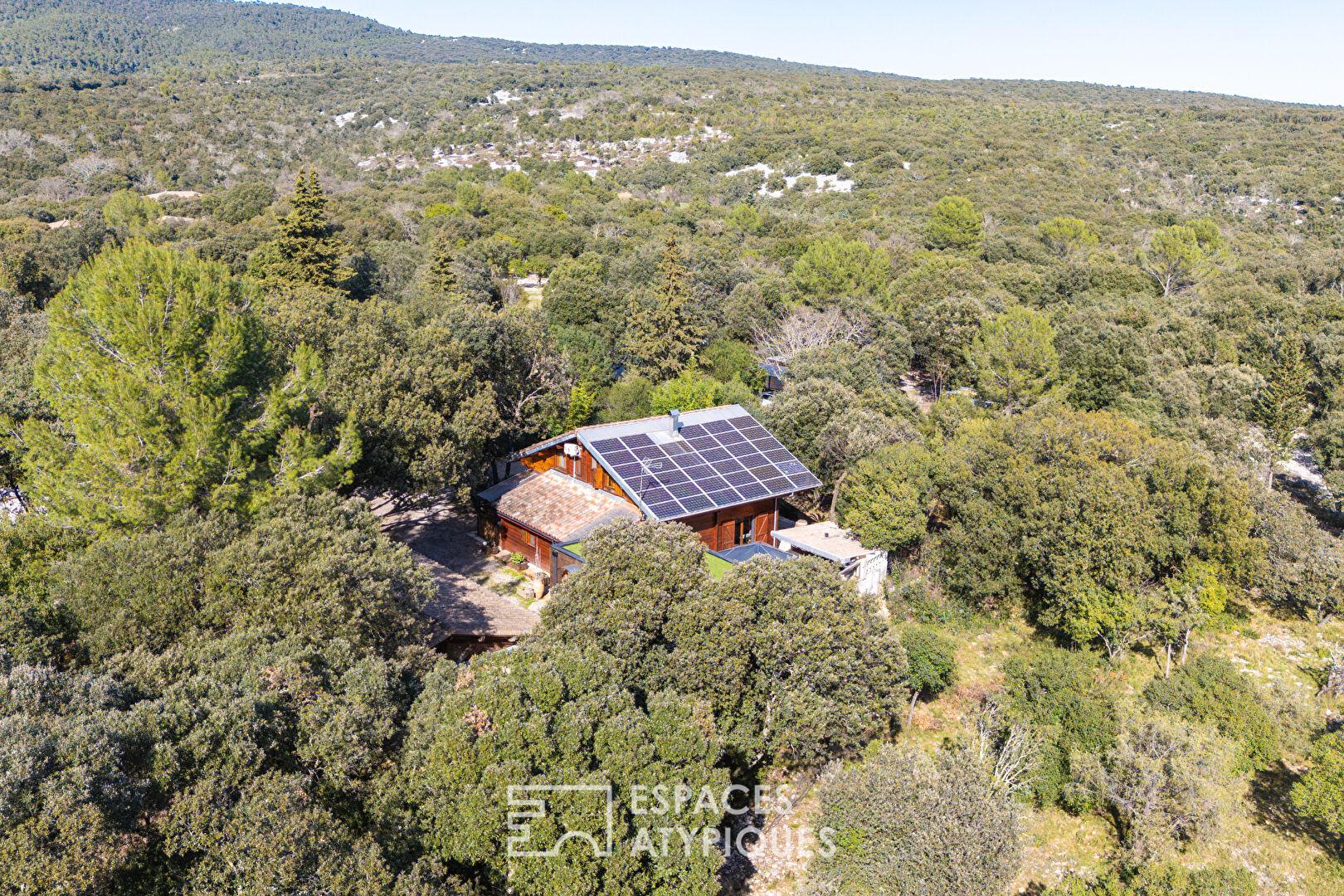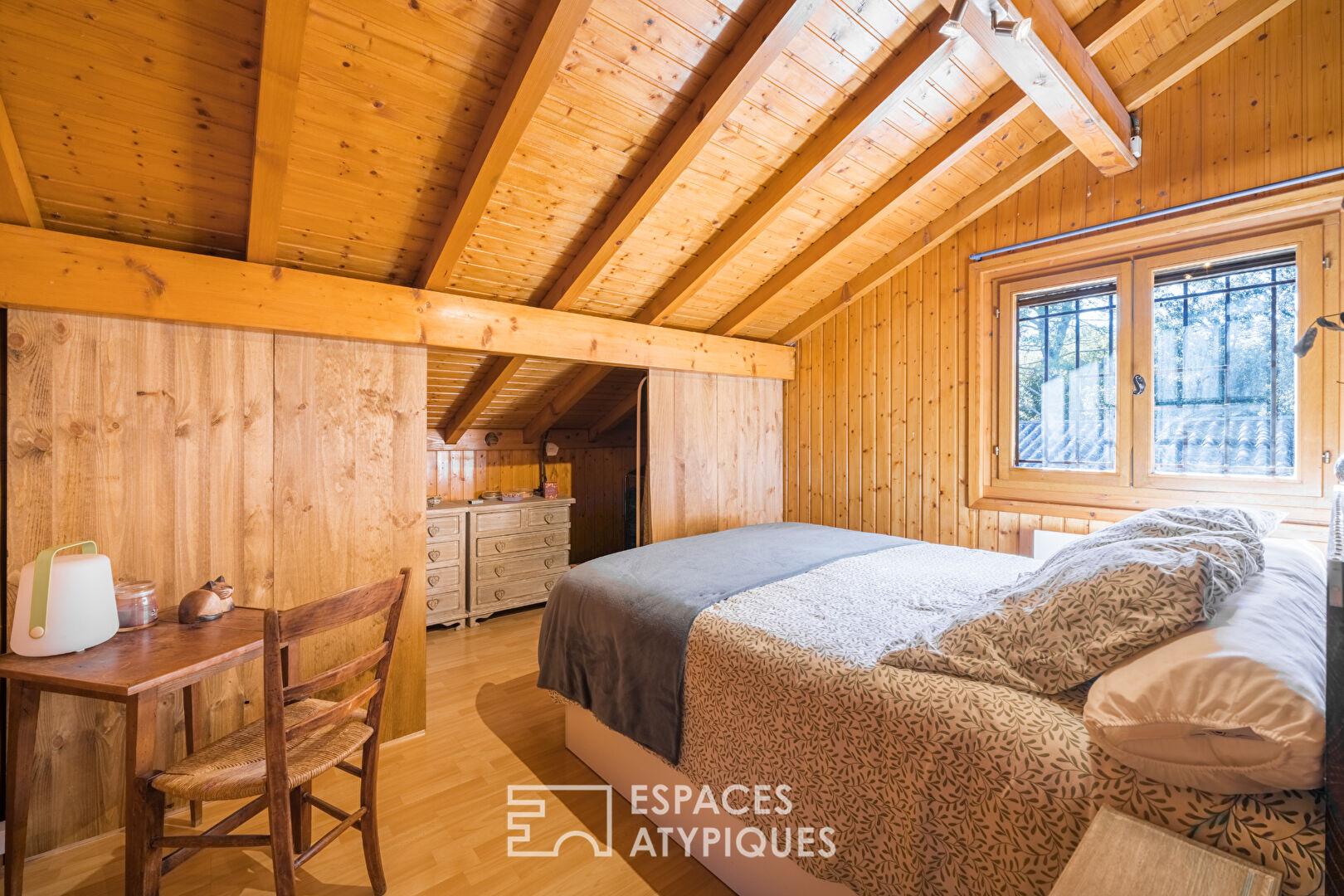 Maison bois avec jardin et étang