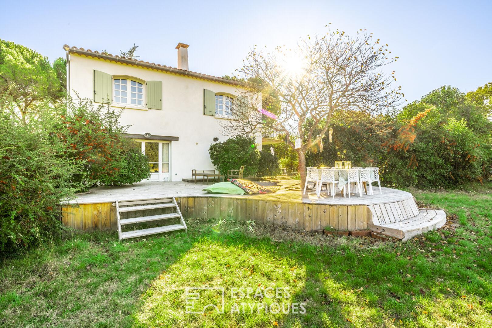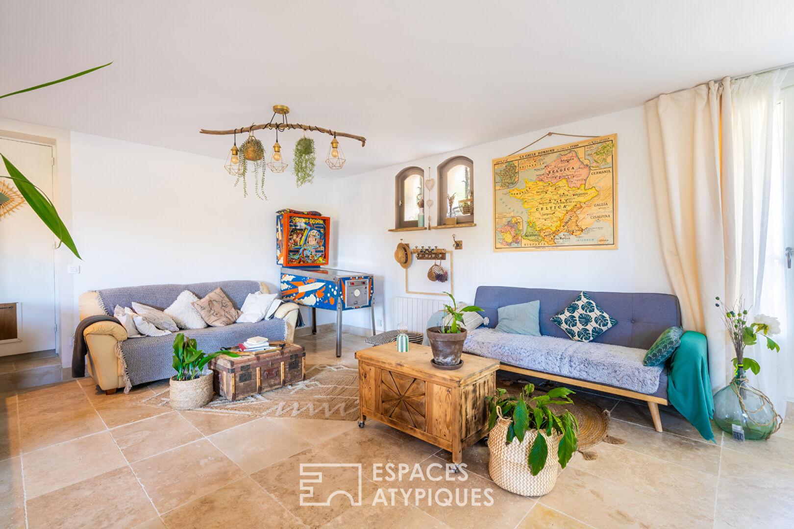 À Valflaunès, à 5 minutes de St Mathieu de Tréviers, se cache une demeure singulière de plus de 200 m² utiles fruit d’une sensible rénovation réalisée en 2018.