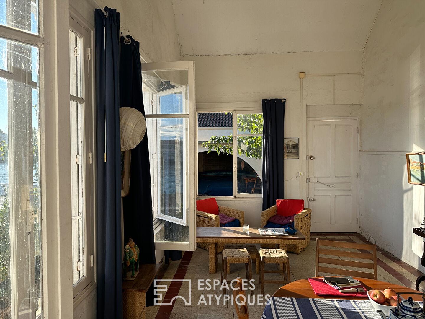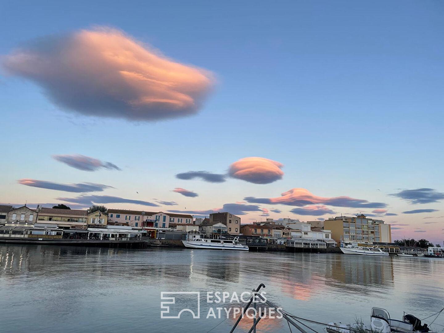 L’architecture de la première maison joue avec l’élévation : son rez-de-chaussée soulevé de 74 cm, crée une véritable loggia originelle. Depuis ce belvédère intérieur, vous dominez l’effervescence douce du quai tout en préservant une intimité absolue, et bénéficiez de vues inédites et sans égales.