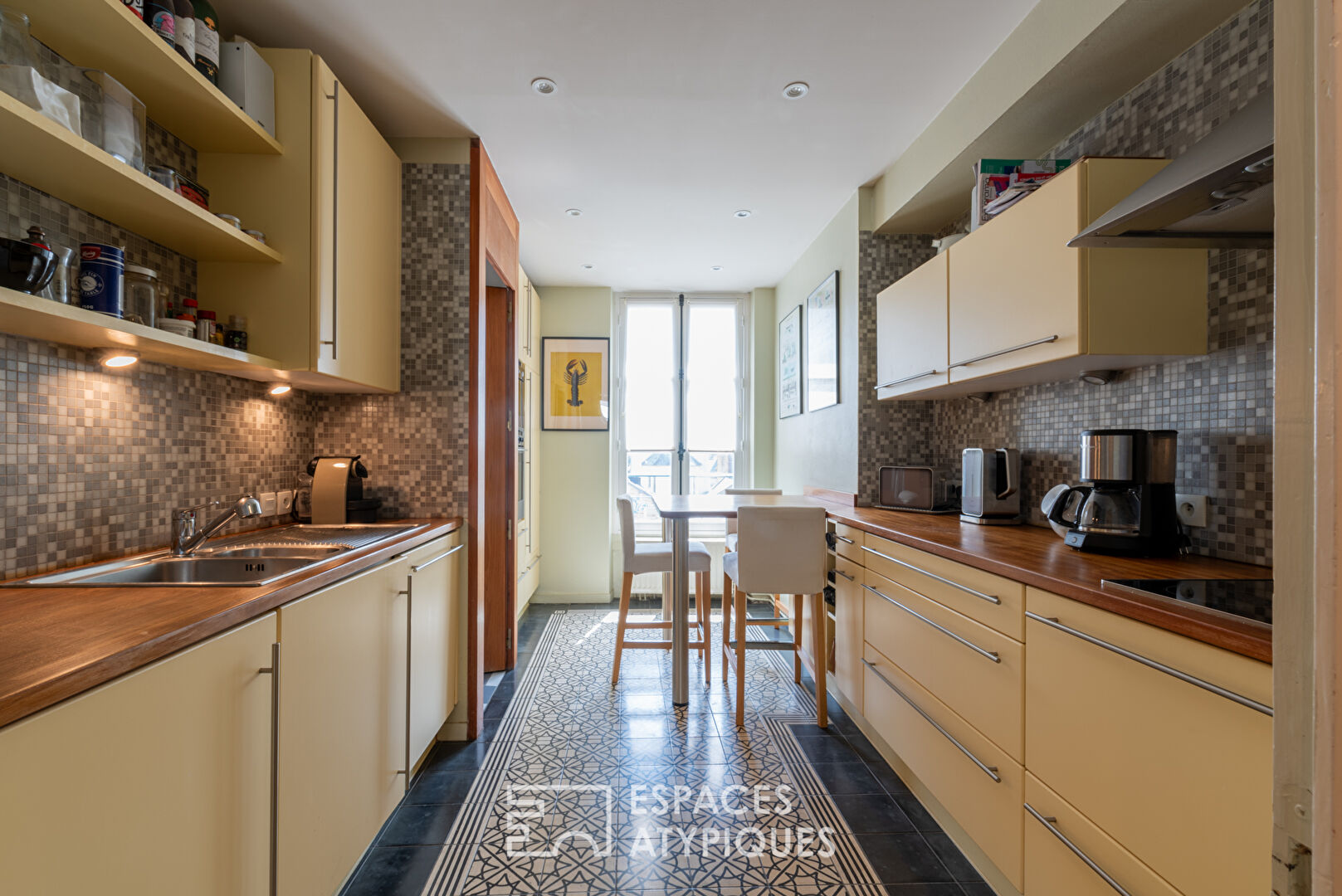 Situé au troisième étage d’une jolie copropriété du XIXe siècle bien entretenue, il s’ouvre sur une belle entrée pourvue de deux rangements. Celle-ci dessert un agréable séjour orné d’un beau parquet massif lui conférant une atmosphère chaleureuse, un bureau attenant d’environ 8 m² actuellement aménagé en chambre, puis une cuisine aménagée et équipée. Au même niveau, au calme côté cour, on découvre une chambre dotée d’un joli manteau de cheminée en marbre et une salle d’eau pourvue d’un espace buanderie.