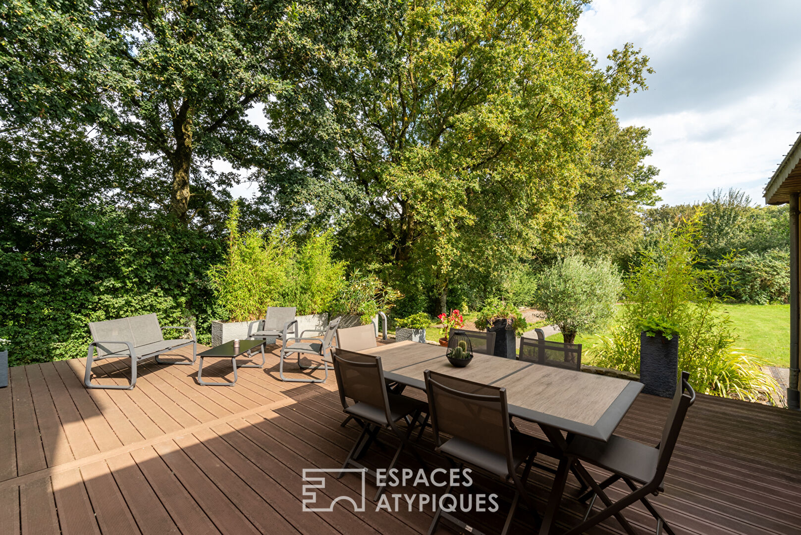 Traités avec soin, les extérieurs offrent de beaux espaces de détente. Le jardin et ses allées paysagées laissent entrevoir de jolies nuances de matières, on y découvre deux terrasses, un potager et un petit bassin.