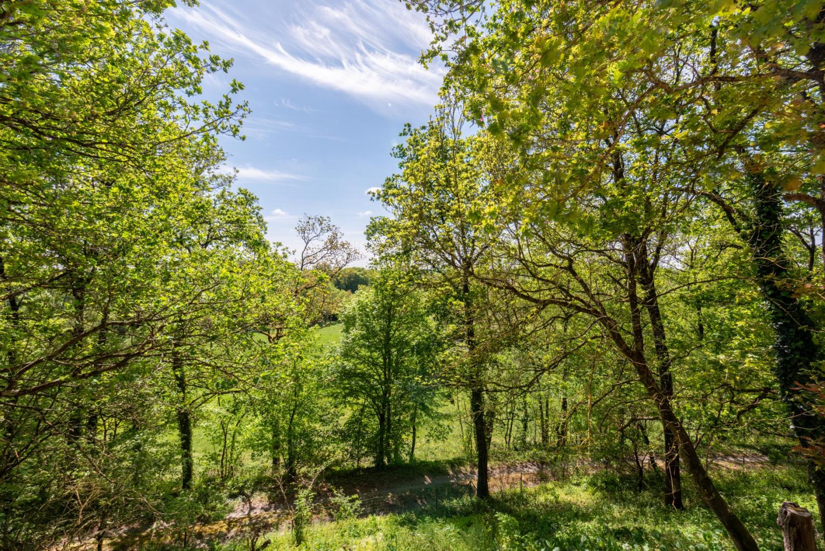 Réservé aux amoureux de belle campagne, ce bien singulier flanqué sur sa colline et entouré de bois, propose une véritable connexion à la nature.