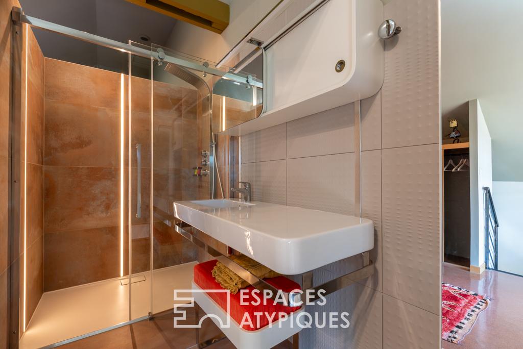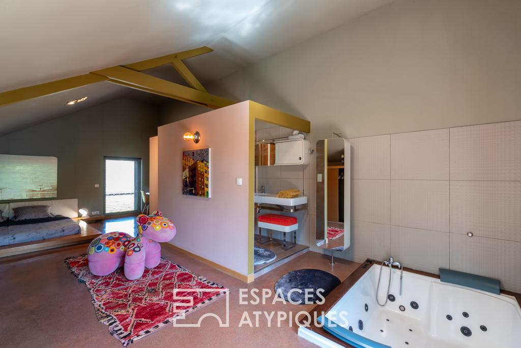Si le temps n’a eu aucune prise sur ces murs de pierre, la rénovation et la décoration savamment orchestrées s’y marient avec subtilité pour composer une atmosphère contemporaine chaleureuse.