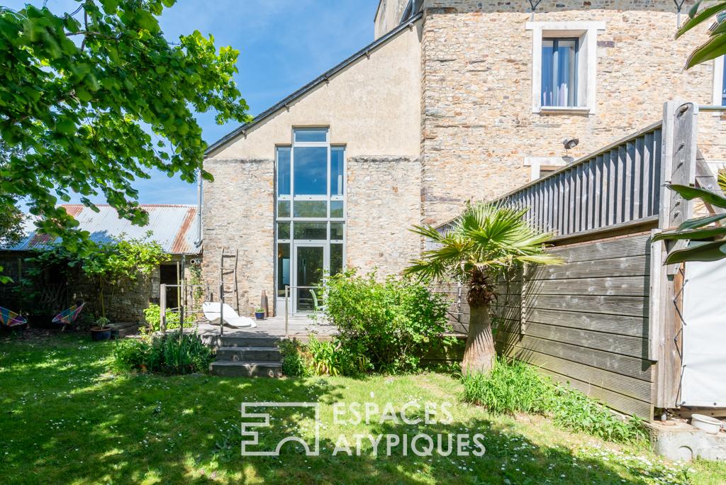 Au coeur d’un très joli village situé à vingt minutes de Rennes et seulement cinq minutes de tous les services et commerces, cette généreuse demeure et son jardin intime présente une distribution singulière et de sérieuses prestations.