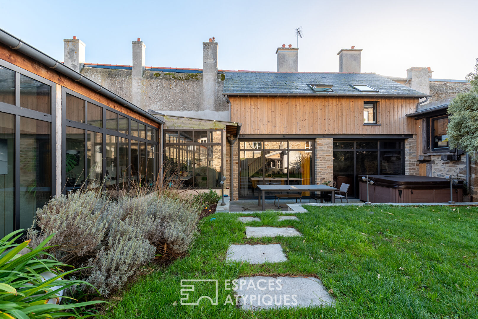 À l’extérieur, le charme opère pleinement : un très beau jardin, rare en hyper-centre, prolonge la maison comme un écrin de verdure. Une terrasse plein sud, baignée de soleil, accueille un jacuzzi, promesse de moments de détente privilégiés.