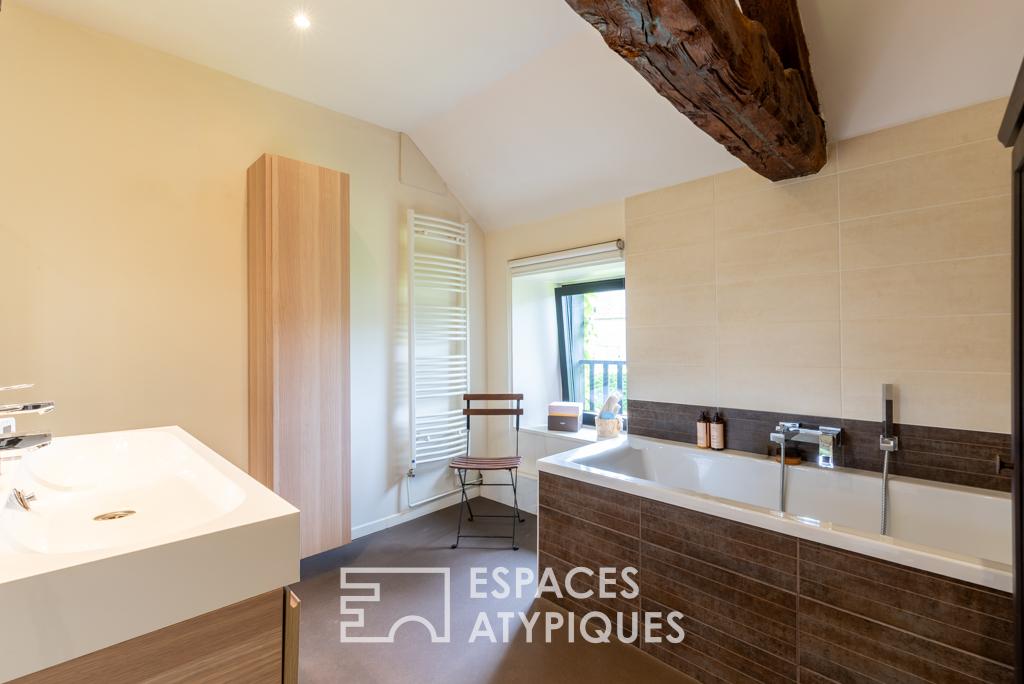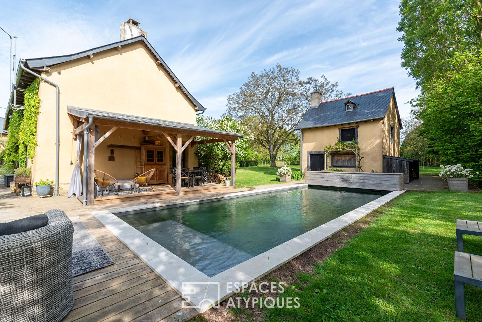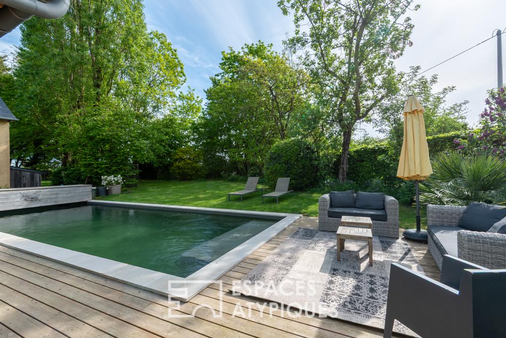 La piscine, parfaitement intégrée à cet environnement bucolique, promet de précieux moments de détente aux beaux jours.