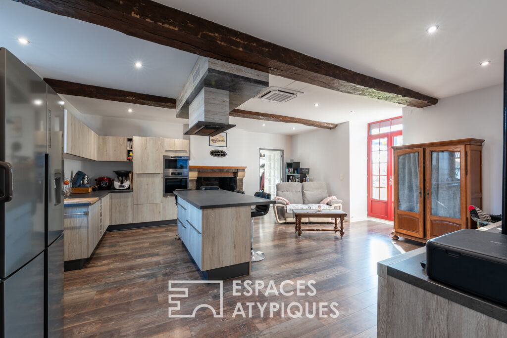 la pièce à vivre présente une vaste cuisine aménagée et équipée ainsi qu’un espace salon séjour destiné aux hôtes.