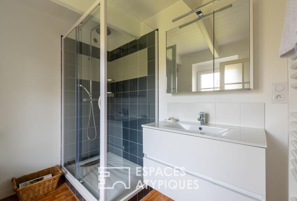 Au second étage, le palier dessert une chambre double, une single ainsi qu’une seconde salle de bain.