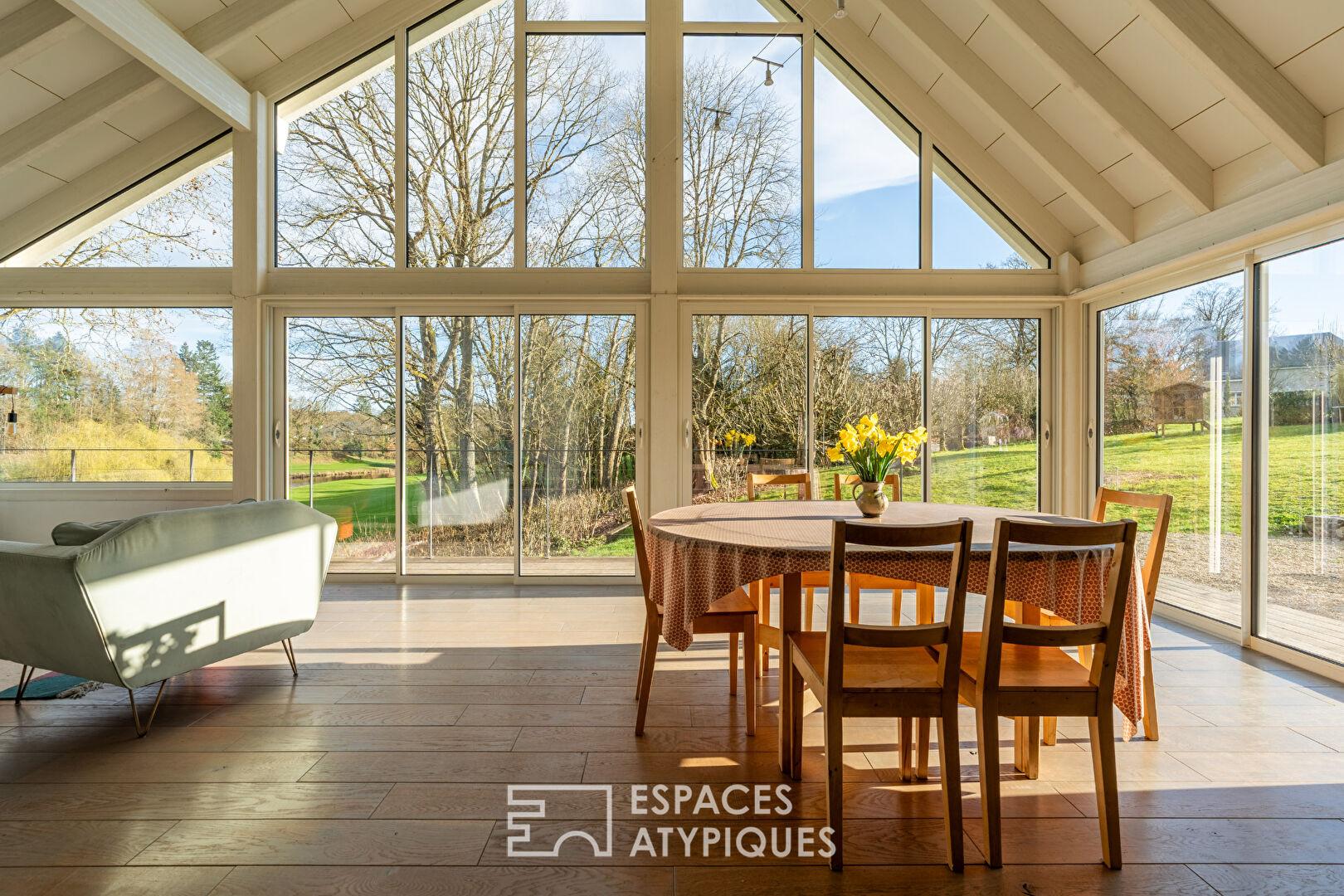Maison de charme avec extension contemporaine surplombant le golf