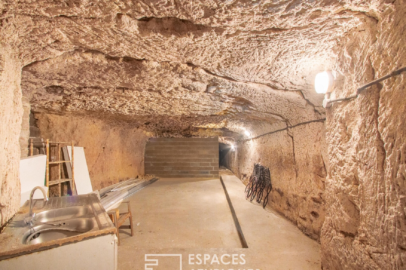 Ce bien singulier bénéficie d’une grande cave carrelée de plus de 60m² accessible par une porte au fond du salon séjour et offre la possibilité de créer un toit terrasse de 30m² derrière la maison dont la dalle est déjà faite.
