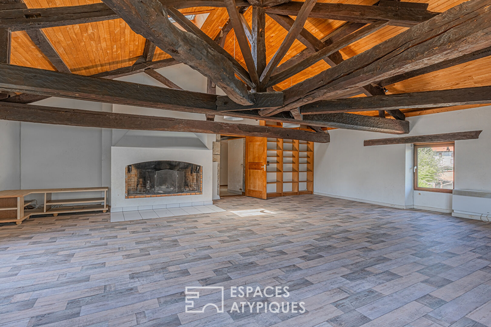 Le deuxième étage, totalement indépendant, est réservé à un appartement de 142 m² sous charpente apparente composé d’une grande pièce de vie, d’une salle à manger/cuisine, d’une mezzanine et d’un coin nuit avec ses 3 chambres, une salle de bains et un WC.