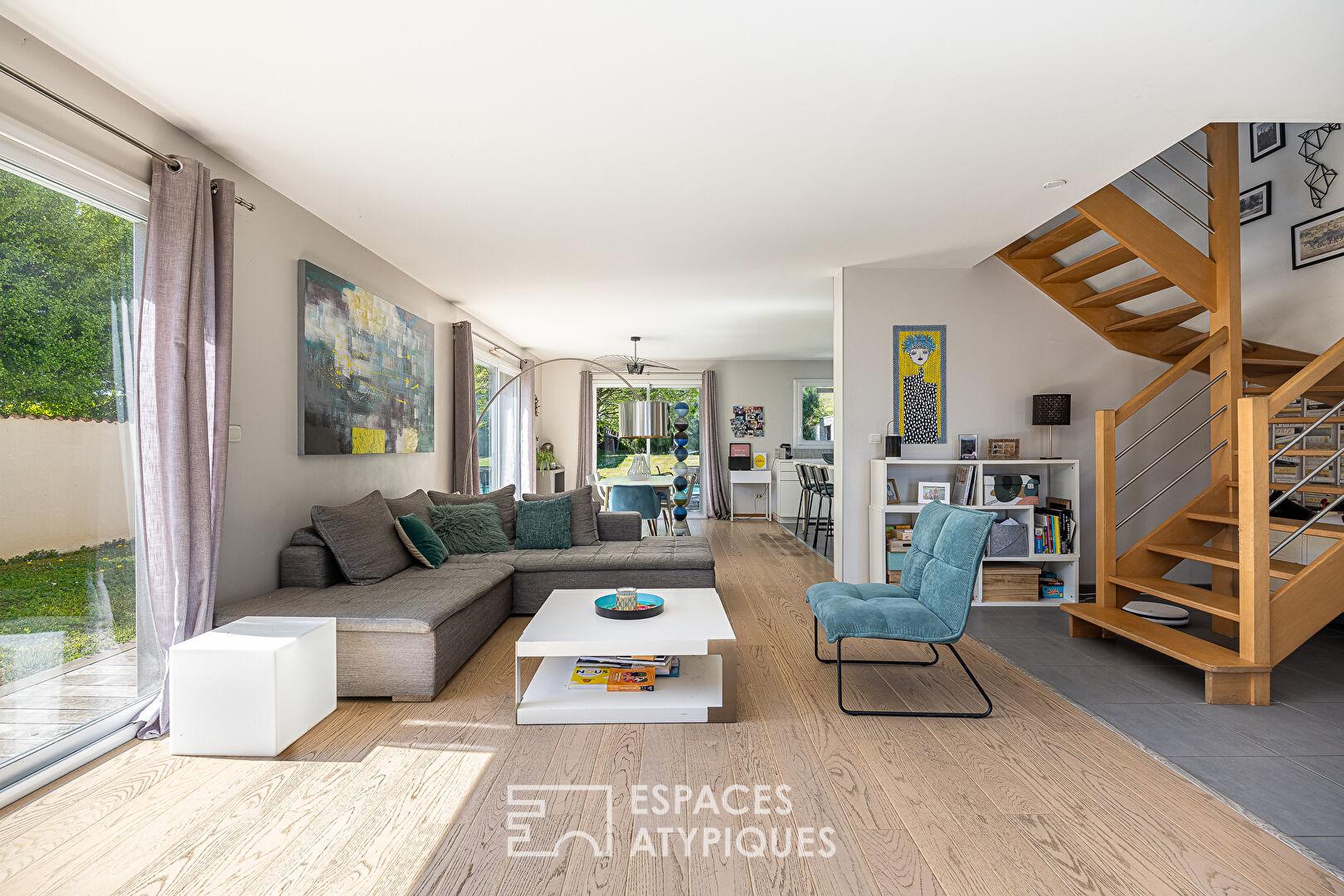 Le jardin, écrin de verdure aux essences variées, est une invitation à la détente.