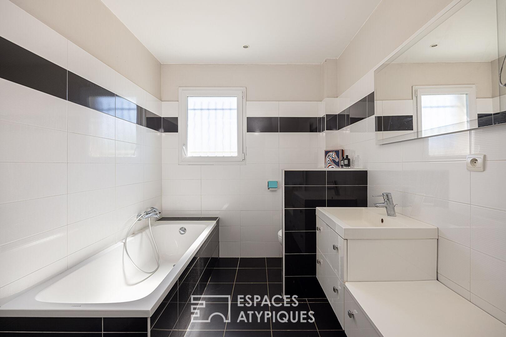 Une annexe indépendante de 18m², résolument moderne, offre une modularité d’usage rare, idéale pour un atelier d’artiste, une profession libérale ou un bureau pour le télétravail.