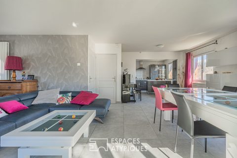 L’habitation s’étend sur deux niveaux pour proposer une surface de 200 m2 sur un terrain de 880 m2. Le jardin a joliment été aménagé, agrémenté d’un espace vert avec une piscine chauffée, une terrasse orientée sud-est et un espace de stationnement.