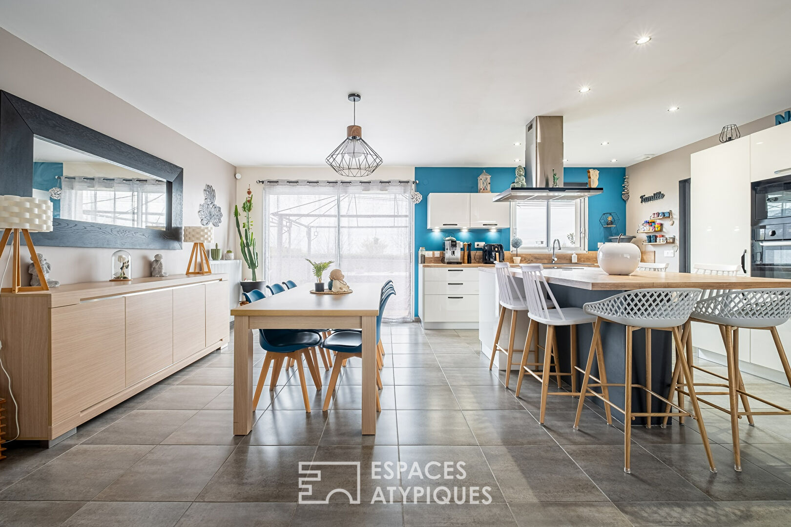 Cette demeure, construite en 2022 selon les normes de la RT 2012, offre une superficie habitable de 114 m² sur une parcelle généreuse de 744 m².