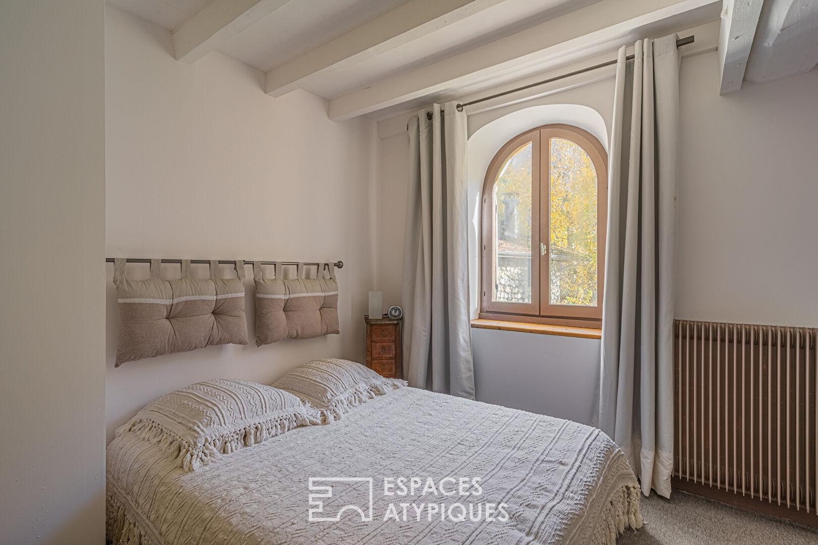Dissimulé au coeur du village de Cognin les Gorges, à moins de 35 minutes de Grenoble et de la gare TGV de Valence, cet ancien moulin bâti du XVIII siècle propose de part sa situation un univers hors du commun. Construit à flanc de village, disposé en restanques successives, il offre tant intérieurement qu’extérieurement, une diversité de lieux et d’ambiances.