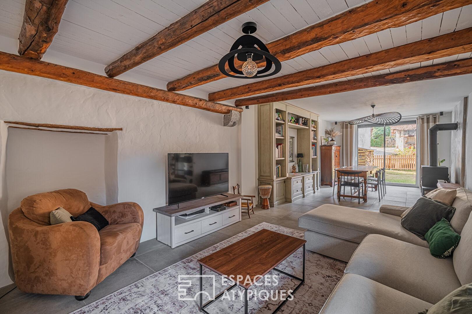 Sur les hauteurs de Chapareillan, cette maison mitoyenne de 164 m², édifiée sur un terrain de 216 m², incarne un bien immobilier atypique au passé singulier. Ancien café de hameau entièrement réhabilité par deux artistes professionnels, elle propose aujourd’hui un cadre de vie unique, entre authenticité et expression contemporaine.