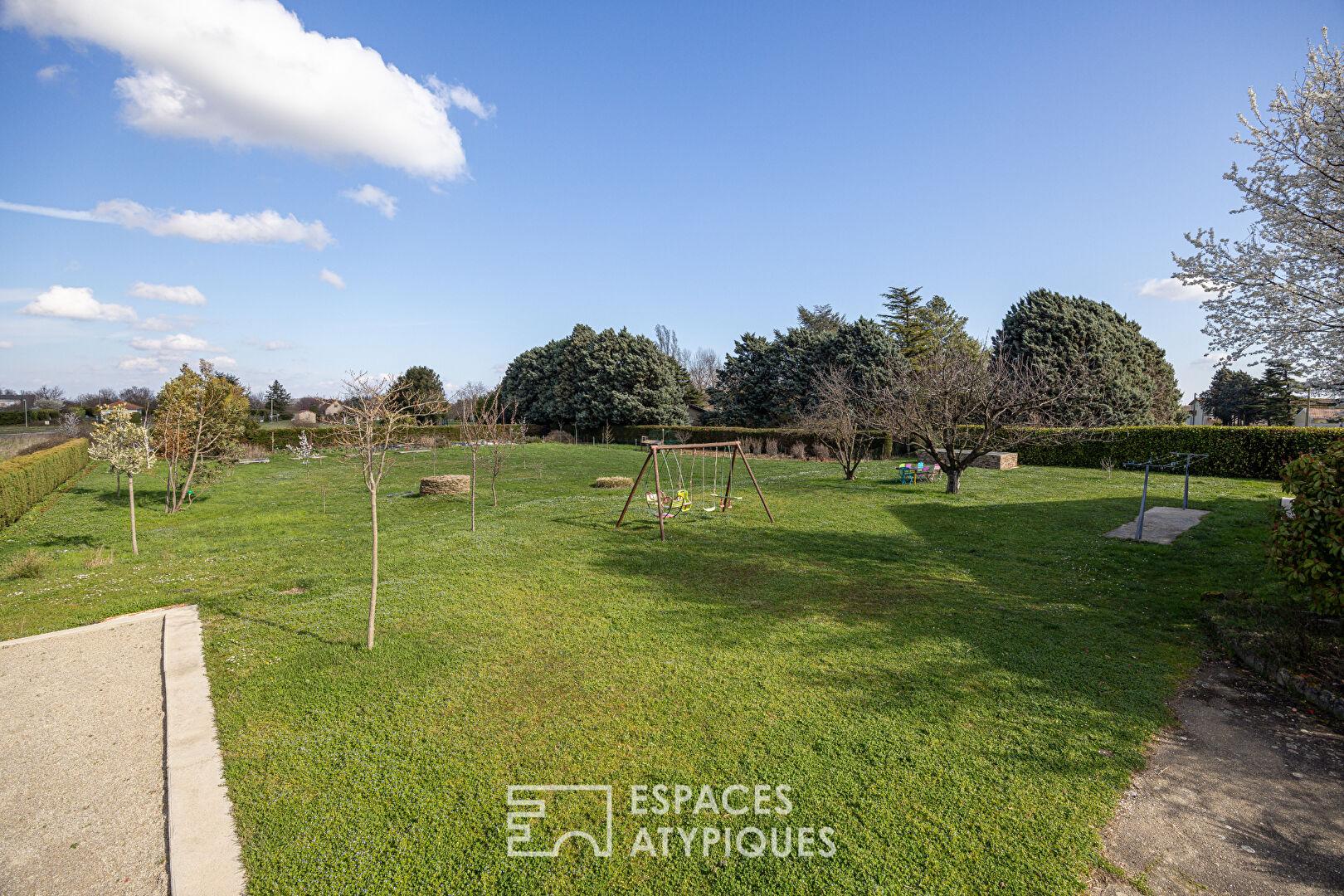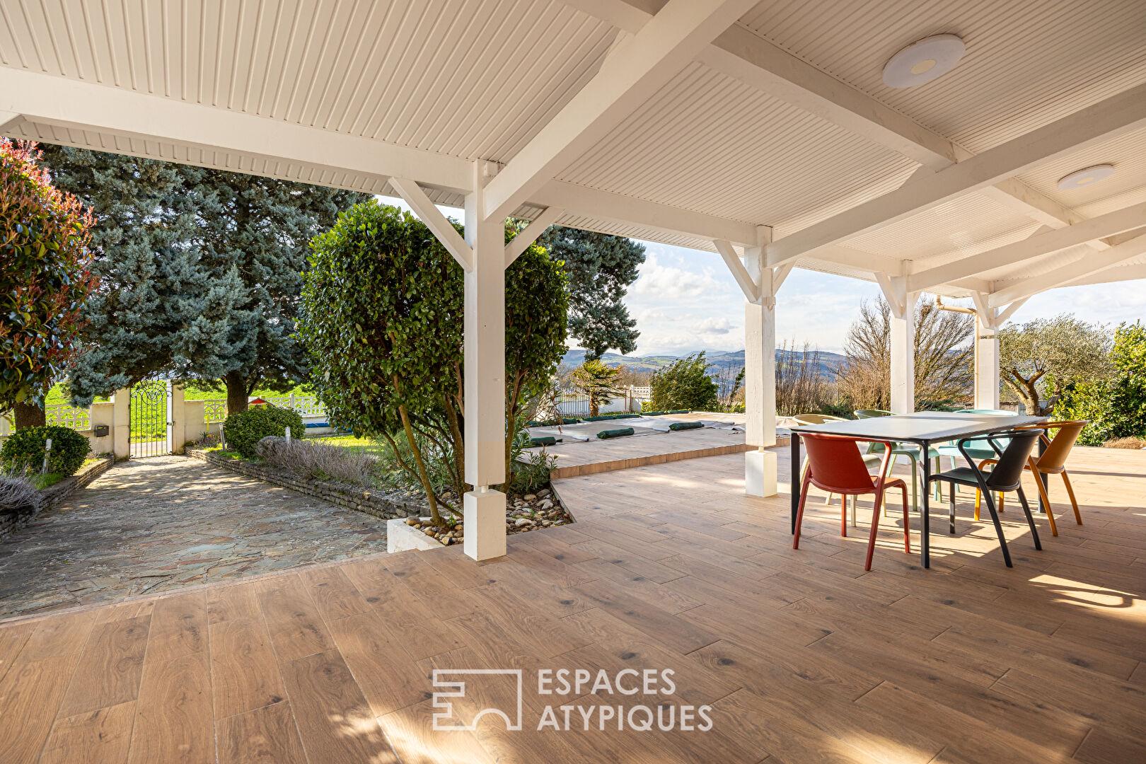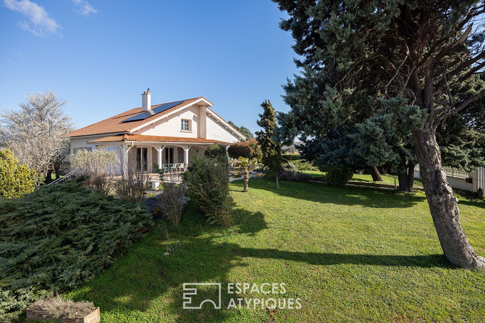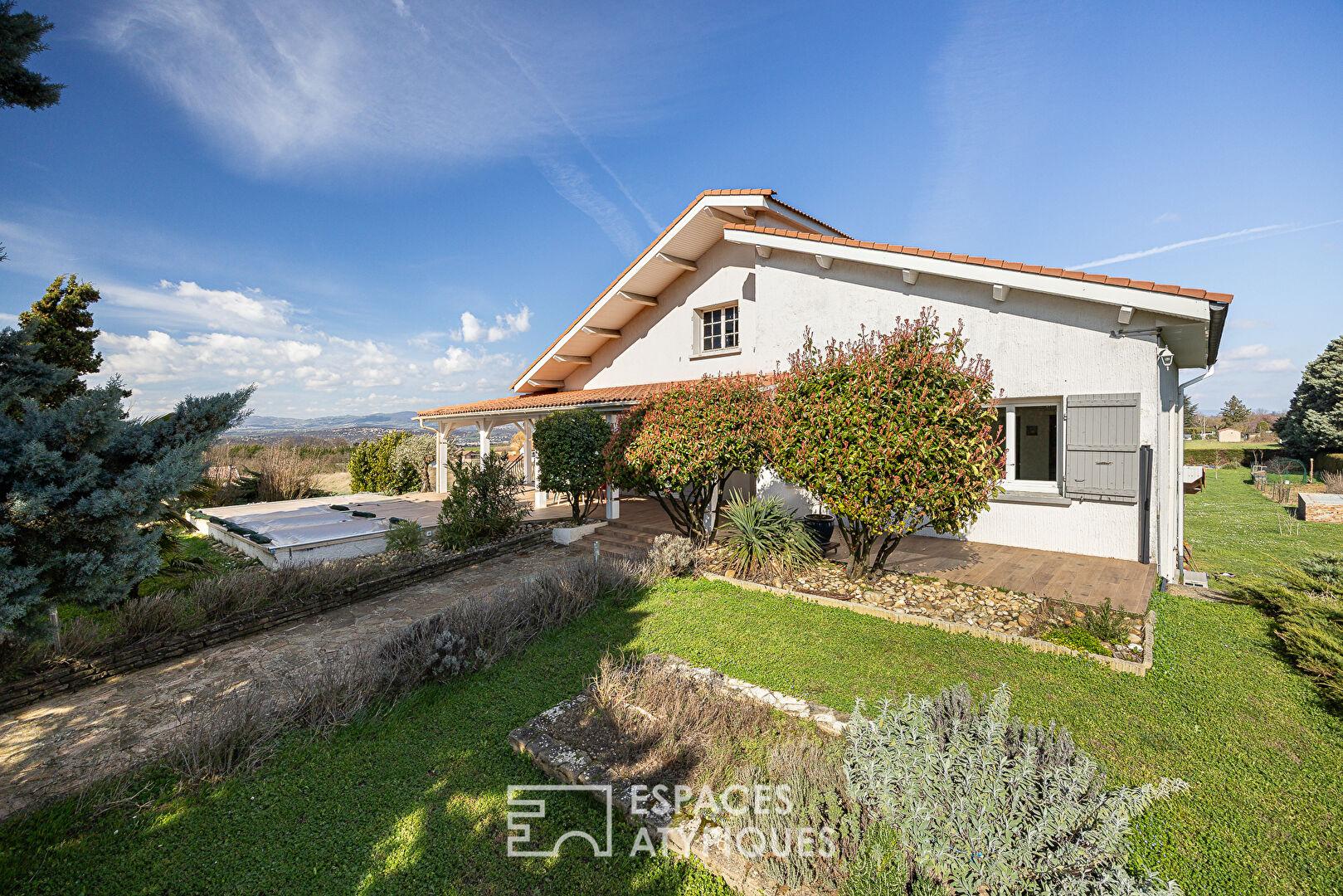 Au coeur d’un environnement préservé et parfaitement au calme, avec une vue dégagée sur les Monts du Lyonnais, cette propriété confidentielle offre un cadre de vie rare.