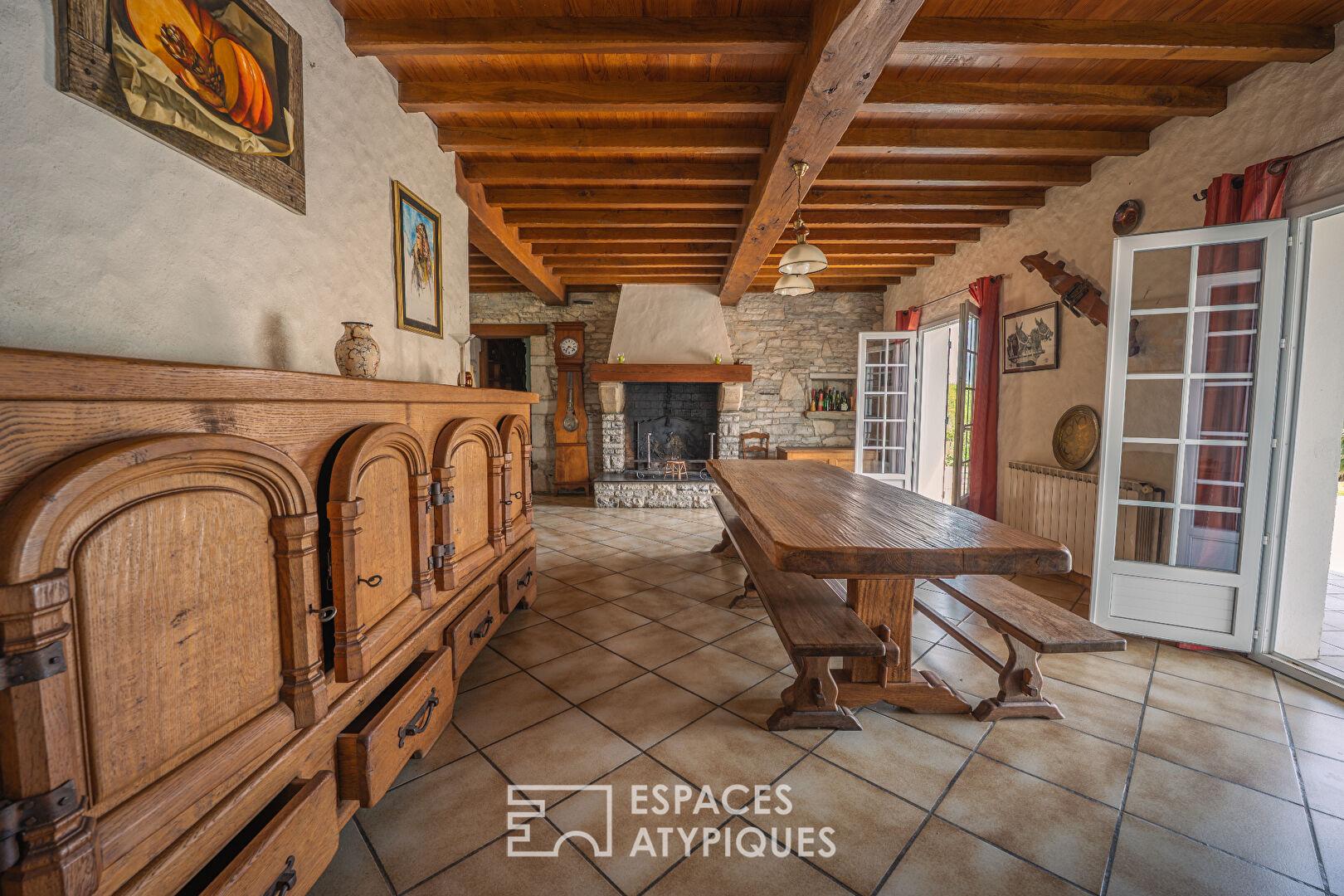 En lisière de forêt, ouverte sur la plaine, la propriété bénéficie d’un environnement préservé, propice au calme et à l’intimité.