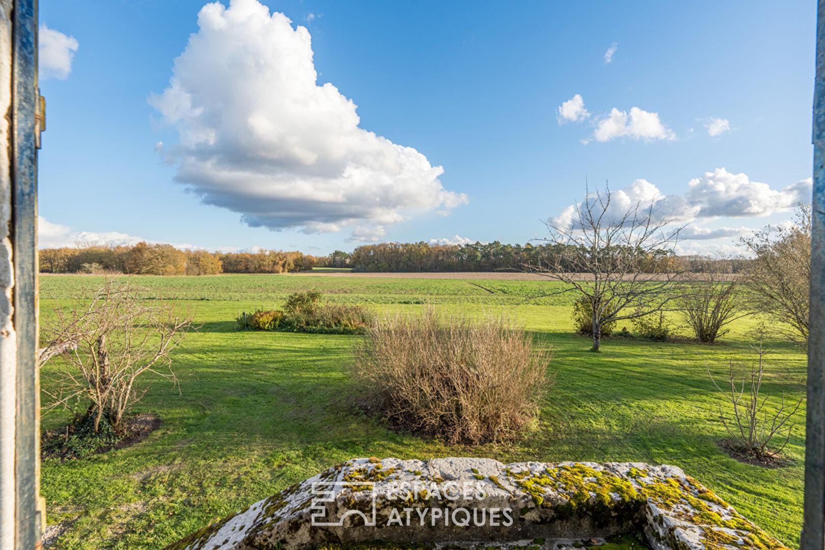 Implantée en pleine nature à Cour-Cheverny, cette ancienne maison vigneronne du XVIIème siècle, aujourd’hui réinterprétée avec élégance, développe environ 280 m² habitables au coeur d’un terrain d’environ 6 000 m².