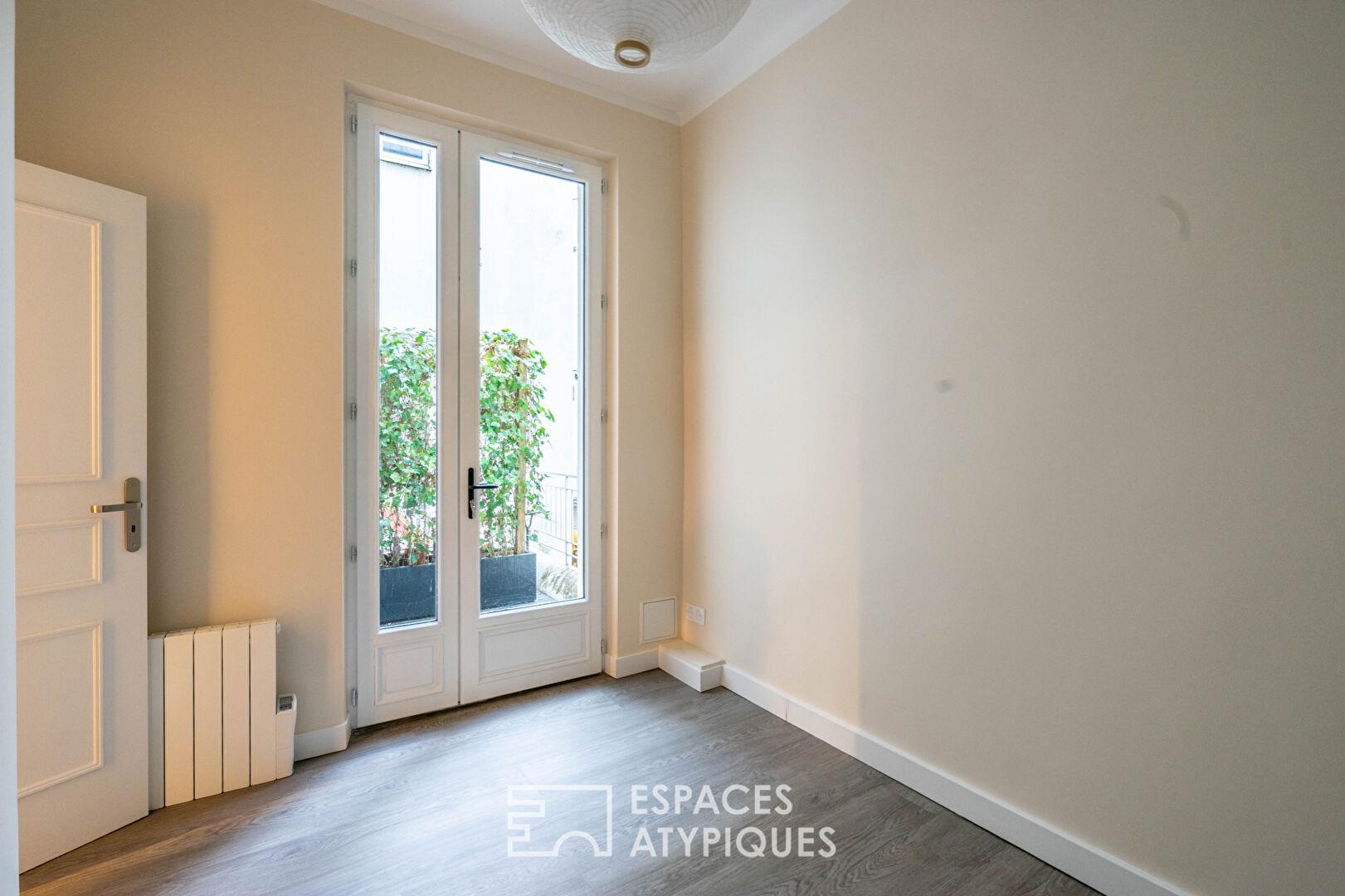 L’appartement séduit par son charme et sa fonctionnalité. Il se compose de deux chambres lumineuses, dont une sur cour et ouvrant sur une agréable petite terrasse .