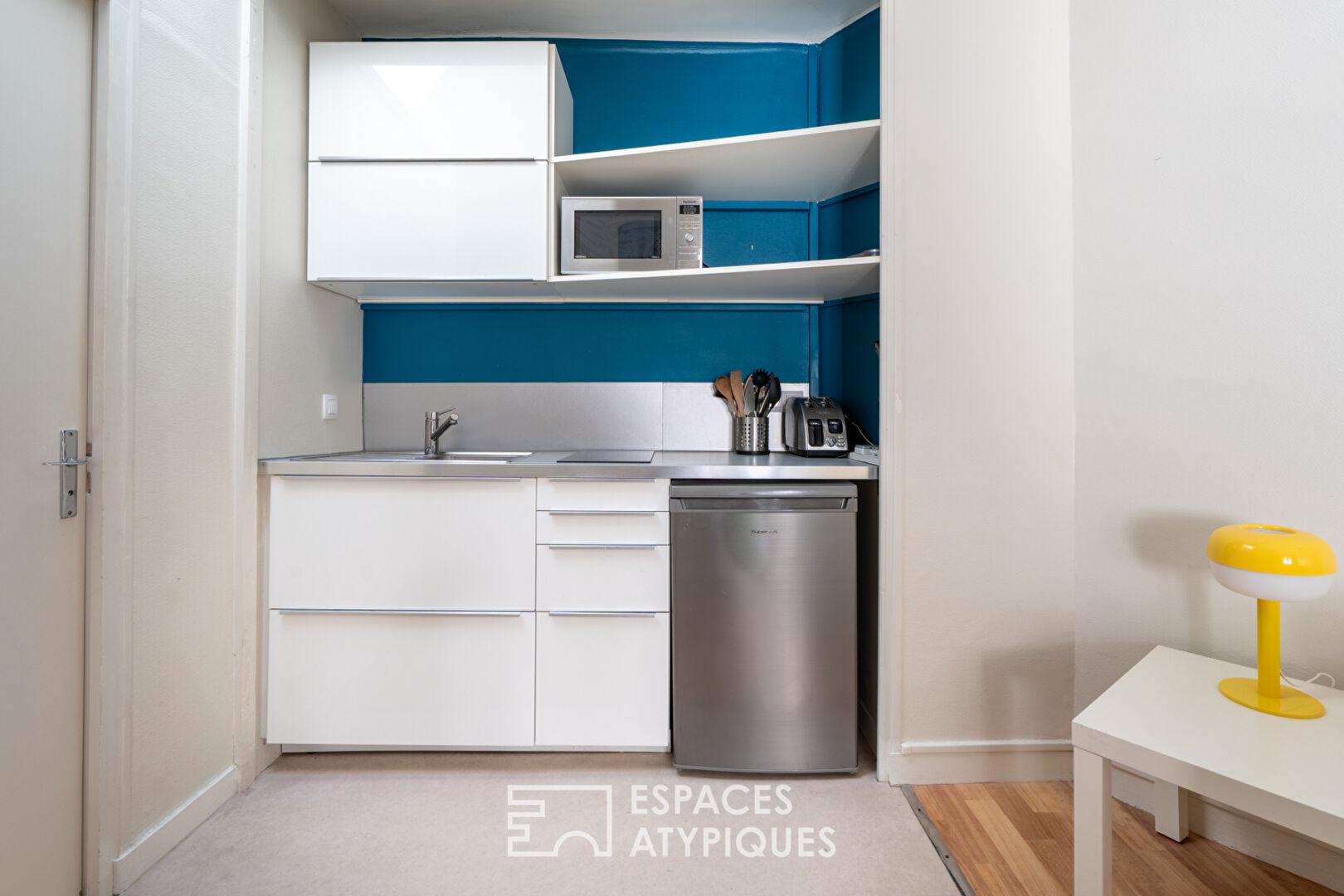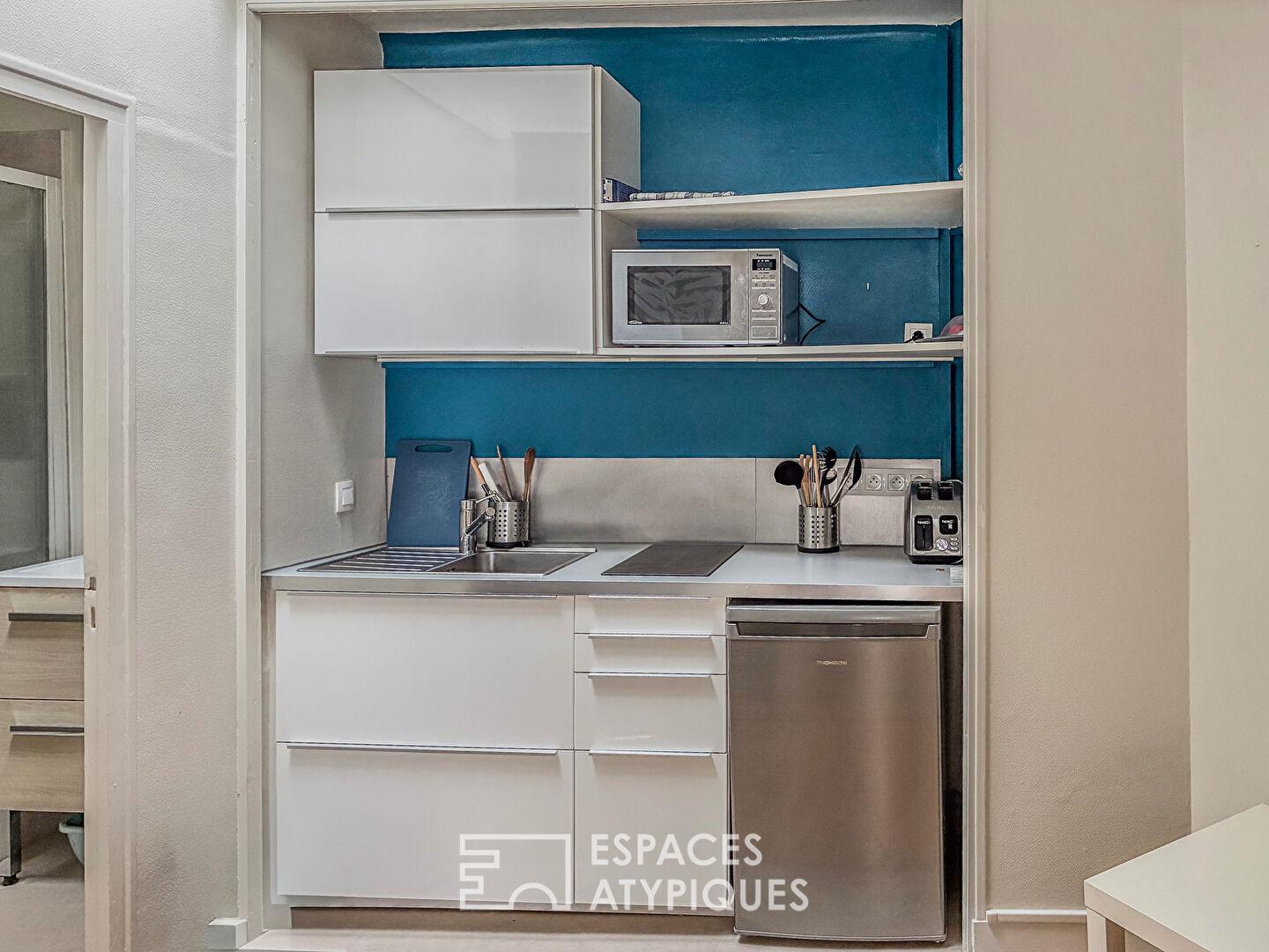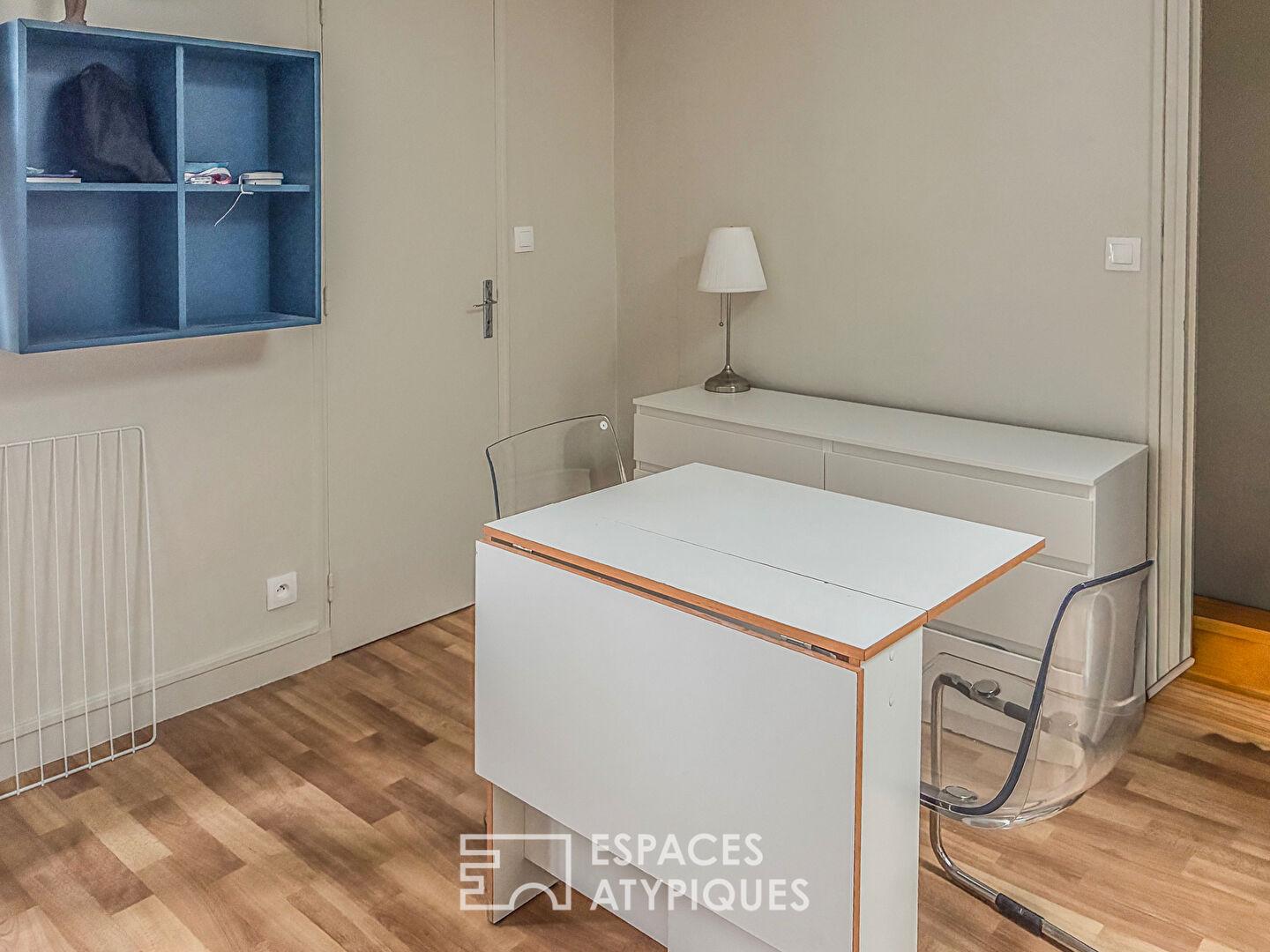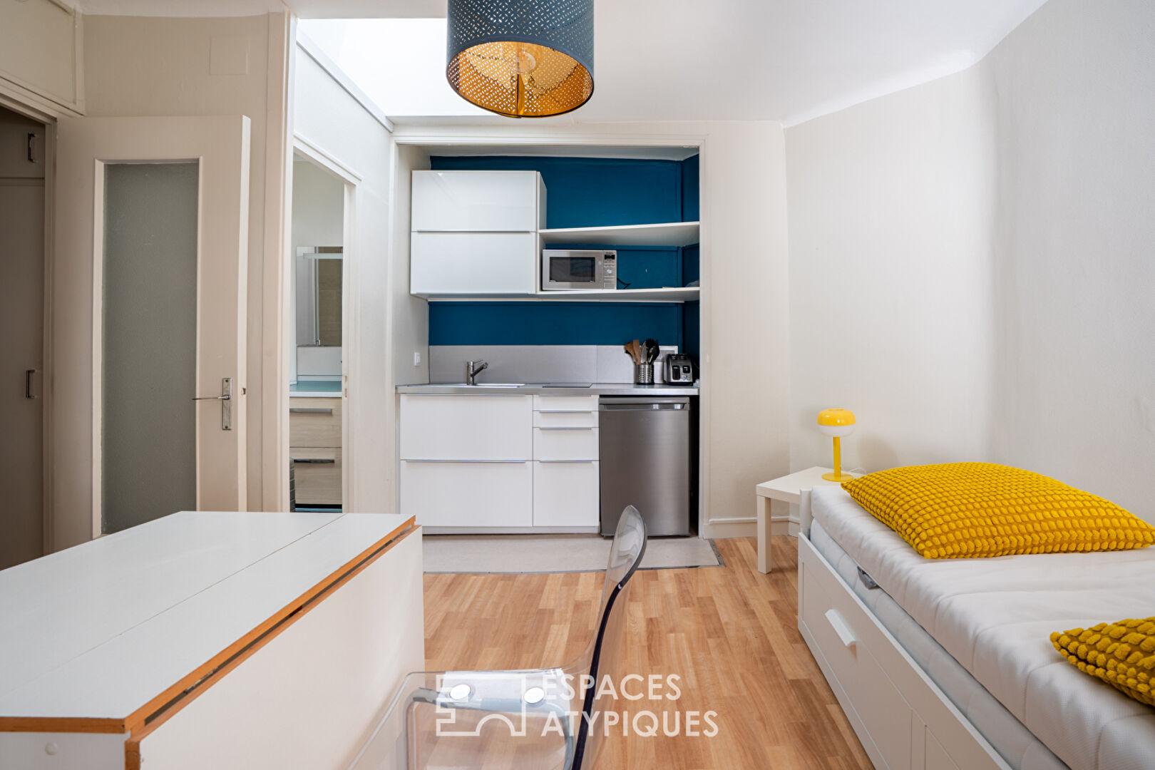 Situé au coeur du quartier très prisé de la rue Camille Berruyer, au 3ème et dernier étage d’un élégant immeuble bourgeois, ce studio a été pensé comme un véritable cocon urbain.