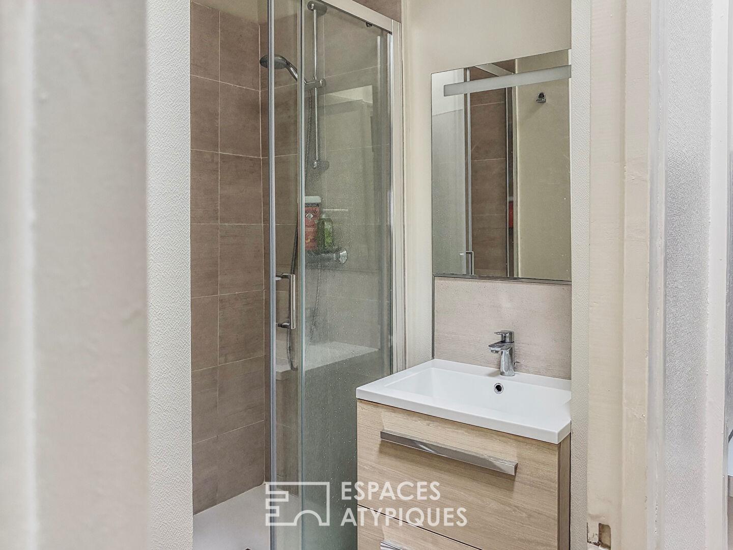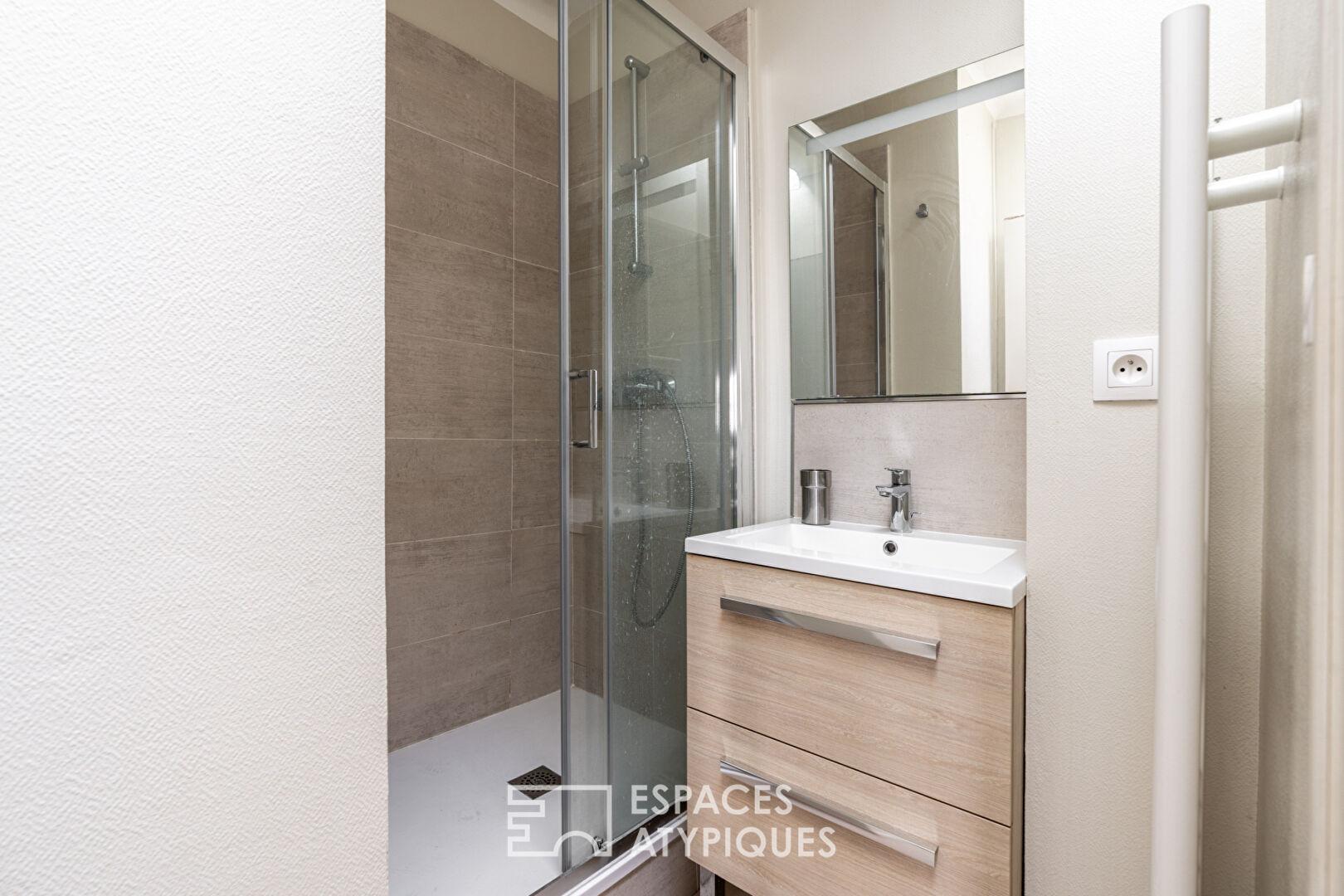 Le Confort Urbain : Une salle d’eau contemporaine et, atout rare pour cette surface, un WC indépendant.