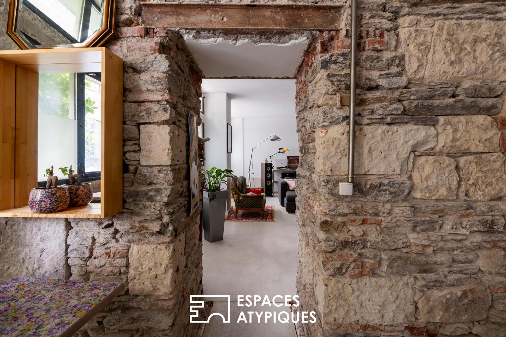 « Un lieu de vie texturé et singulier, proposant une configuration ‘une chambre’ idéale pour un couple ou un usage mixte. Un refuge urbain où l’histoire des murs devient le décor principal. »