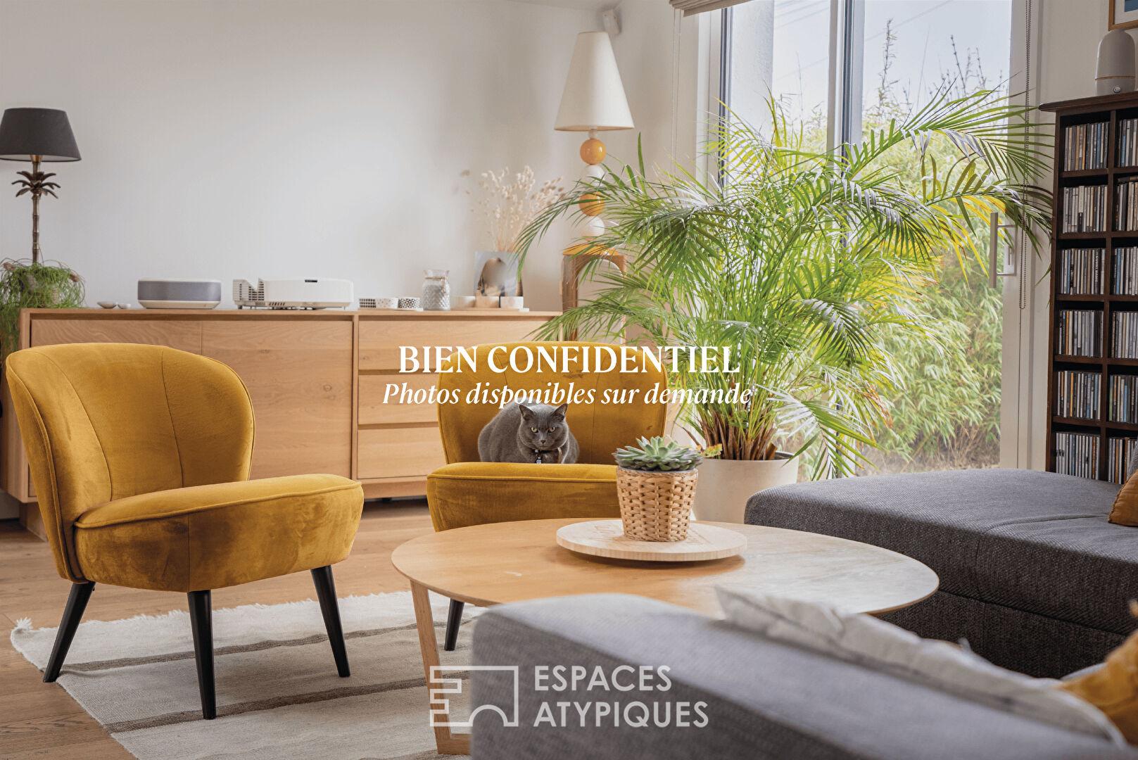 Le rez-de-chaussée, complètement repensé par un architecte, s’organise autour d’une vaste pièce de vie décloisonnée, combinant cuisine, espace repas et salon dans un ensemble cohérent, lumineux et convivial.