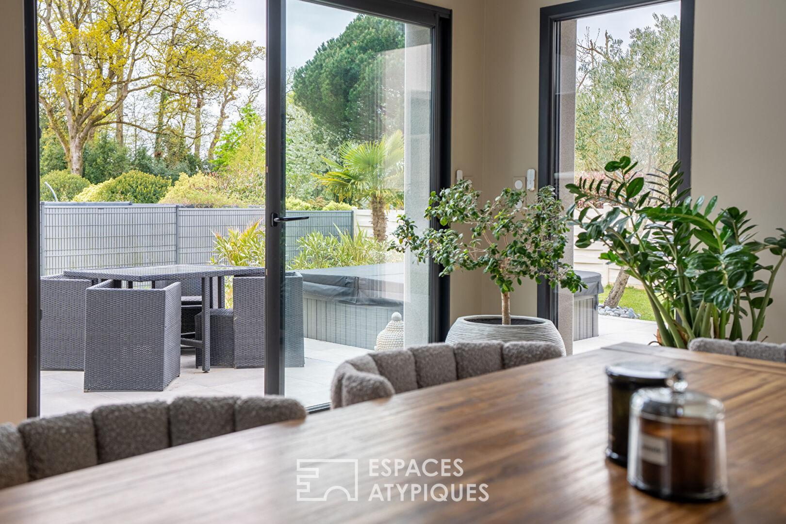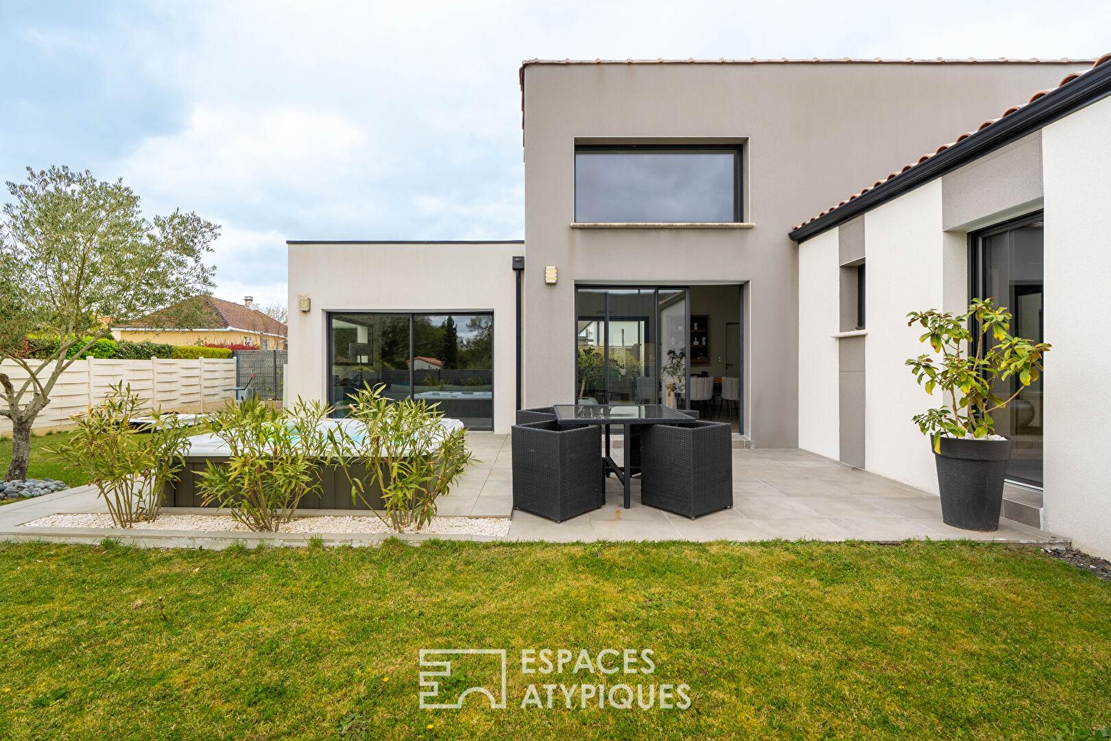 Maison contemporaine de plain-pied avec jardin et jacuzzi