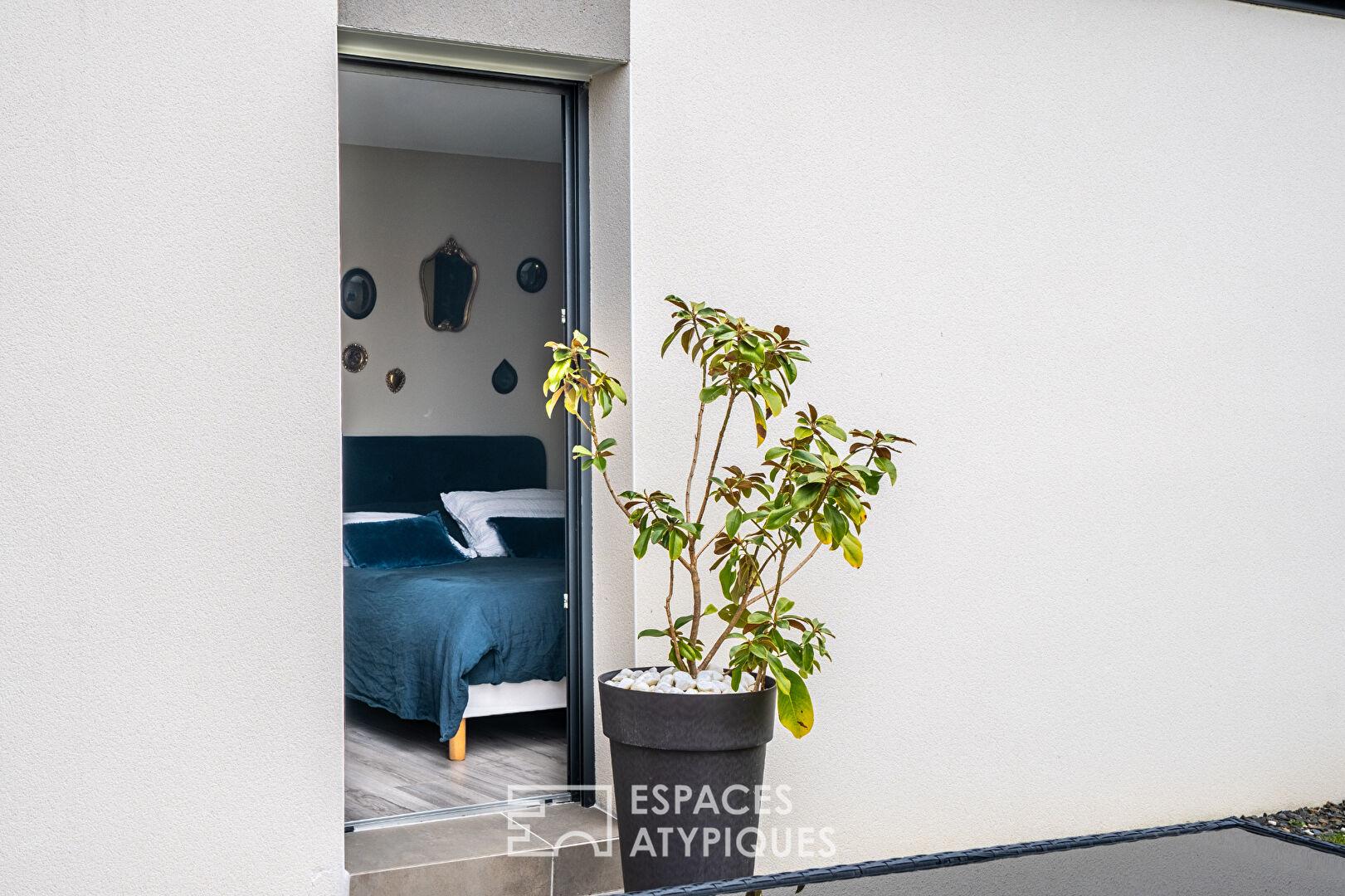 Nichée au creux d’une impasse confidentielle, à quelques battements de coeur du centre de Basse-Goulaine, cette réalisation contemporaine de 2012 déploie de plain-pied une élégance discrète et une intelligence des volumes qui se ressent dès les premiers pas.