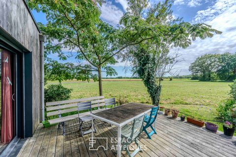Exclusivité Espaces Atypiques: Retrouvez l’harmonie avec la nature dans cette lumineuse maison de plain-pied à ossature bois construite en 2011. Un travail de réhabilitation créant une harmonie entre le moderne et l’ancien. Située dans un cadre paisible à seulement 5 minutes à vélo du bourg de La Chevrolière.