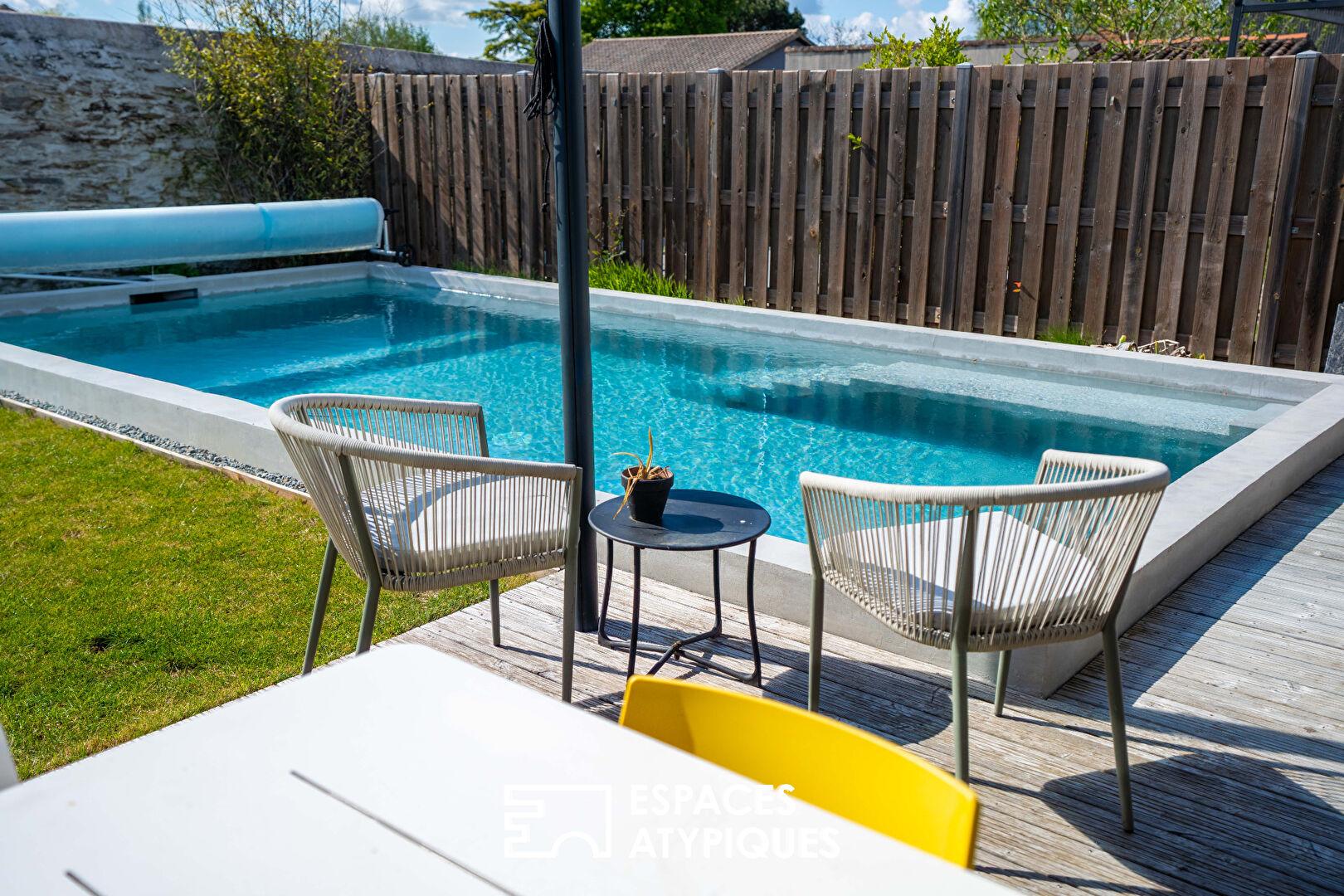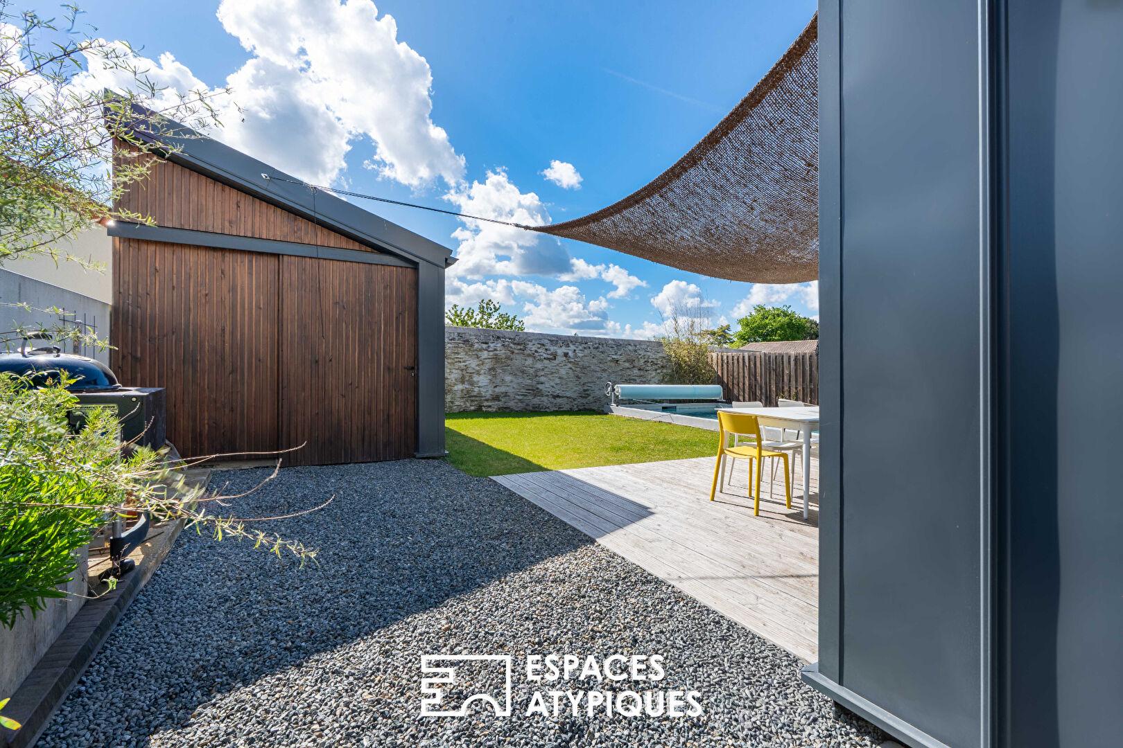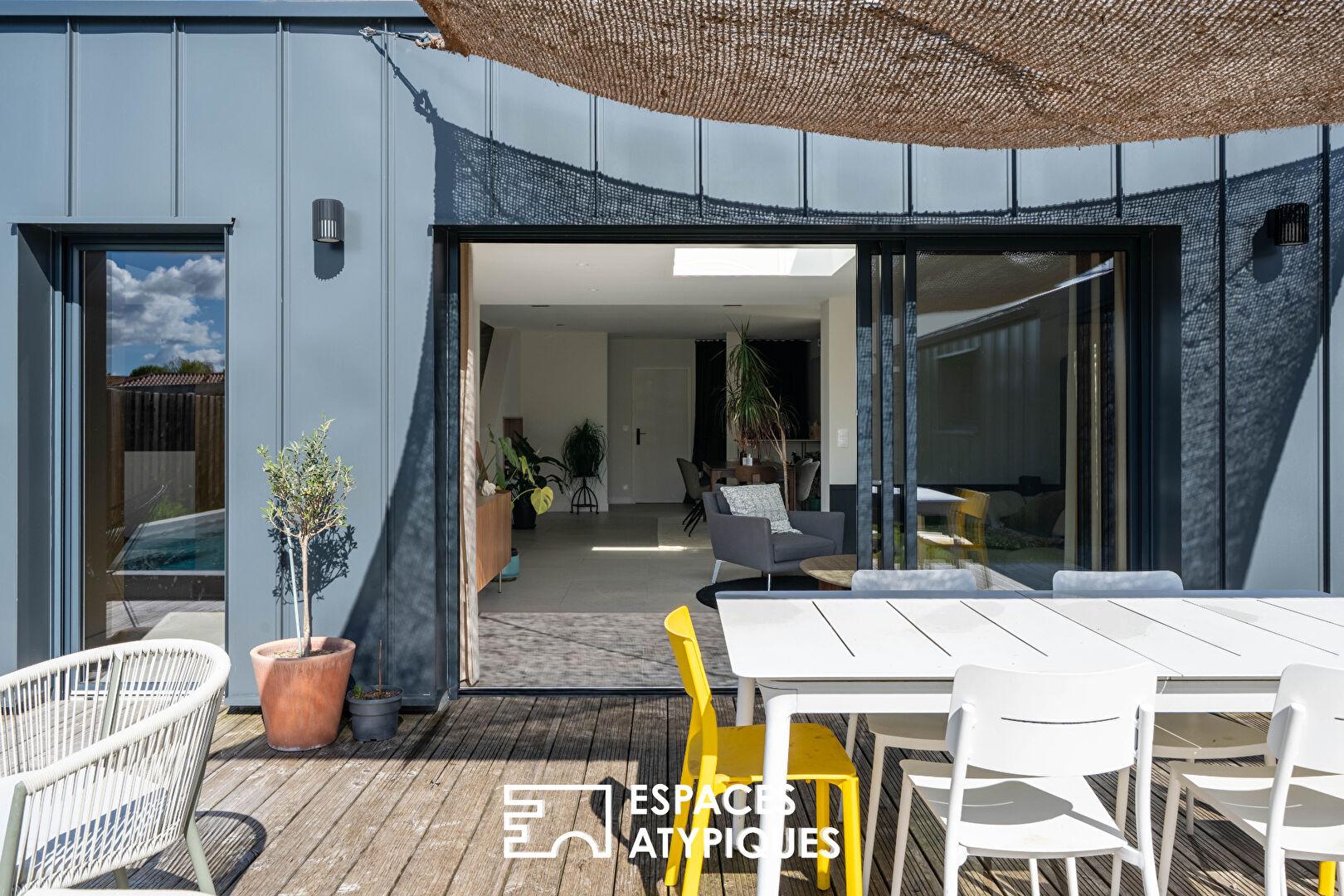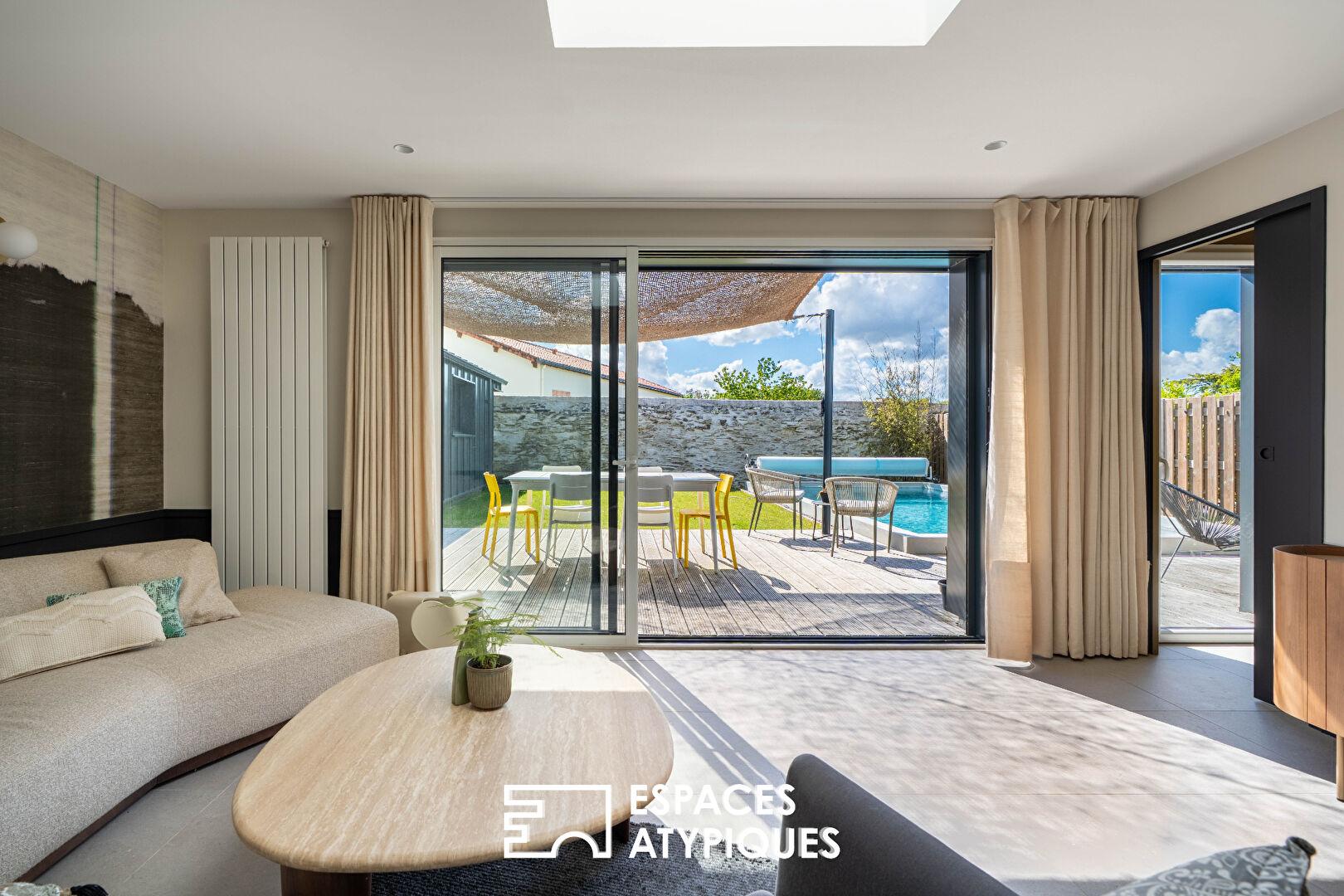 Maison contemporaine et sa vie de plain pied sur piscine