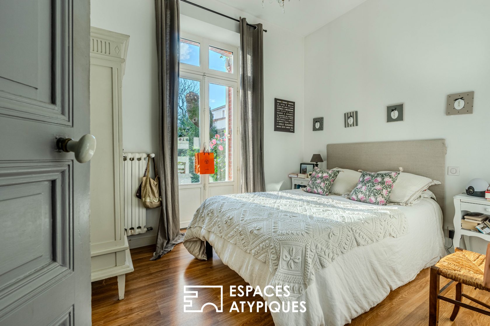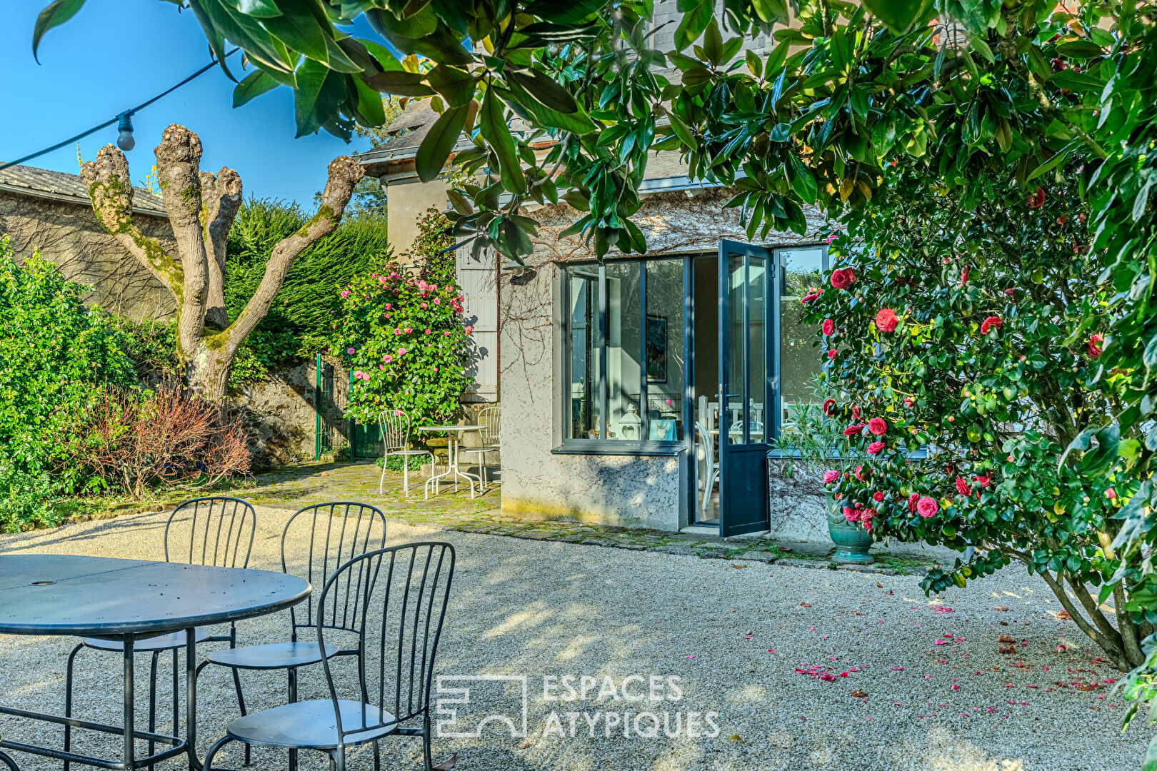 À l’extérieur, un jardin bucolique vous attend. Magnolias, camélias et un majestueux arbre de Judée créent une atmosphère paisible et fleurie, offrant un calme inattendu en plein coeur du bourg. Sans vis-à-vis, entouré de murs en pierres, cet espace extérieur est une invitation à la détente en famille ou à la contemplation.