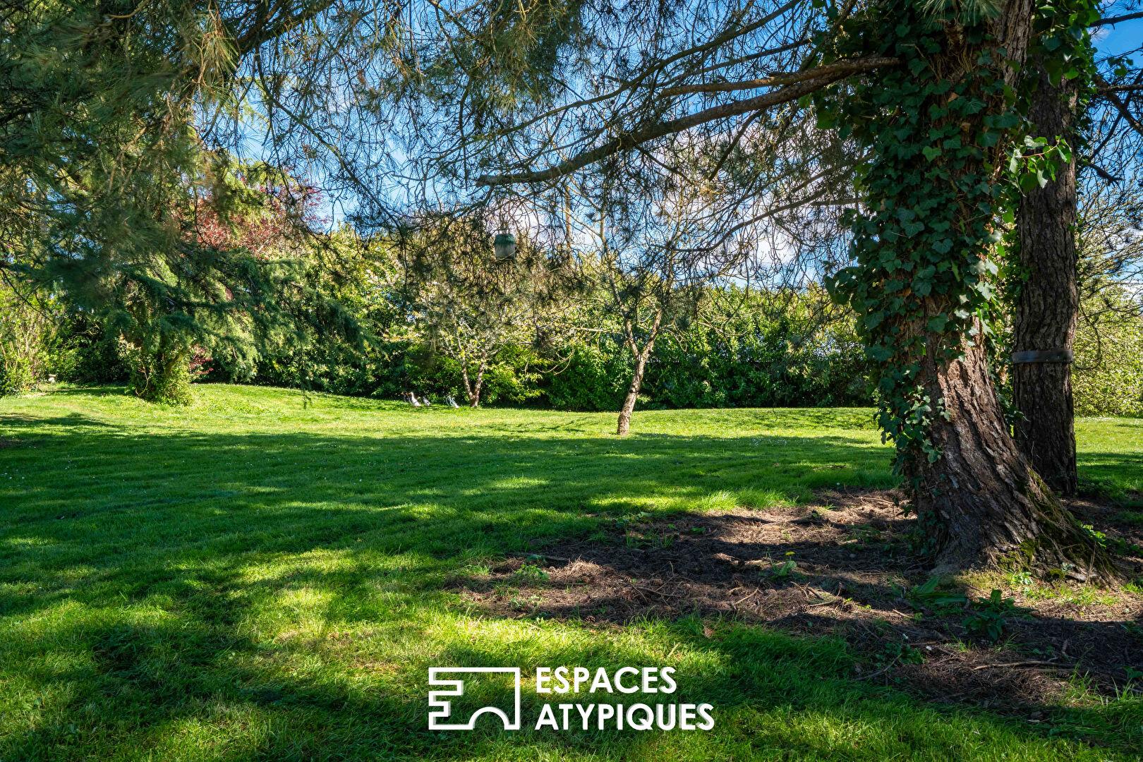 Dans un environnement préservé, au coeur de la campagne de Vertou, cette propriété singulière s’inscrit dans un cadre champêtre d’exception, à l’abri de toute nuisance. Édifiée sur une parcelle arborée de plus de 7 000 m², exposée plein sud, elle offre un art de vivre rare, où lumière, volumes, sérénité et plaisir se conjuguent harmonieusement.