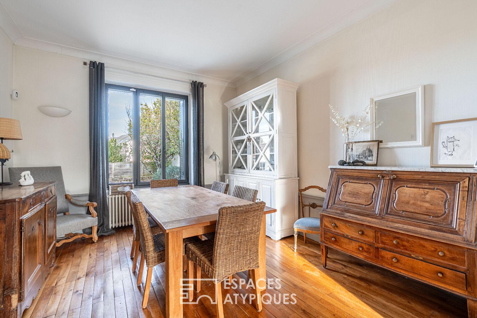Située dans le quartier recherché de Nantes-Sud, à proximité immédiate à pied des commerces et des transports, dont le busway, cette élégante maison des années 1920 développe 147 m2 au sol. Elle a bénéficié d’une rénovation soignée qui met en valeur tout le charme de l’ancien. Parquets d’époque, moulures délicates, boiseries, cheminée ancienne, carreaux de ciment, composent un ensemble chaleureux, parfaitement adapté à une vie familiale.