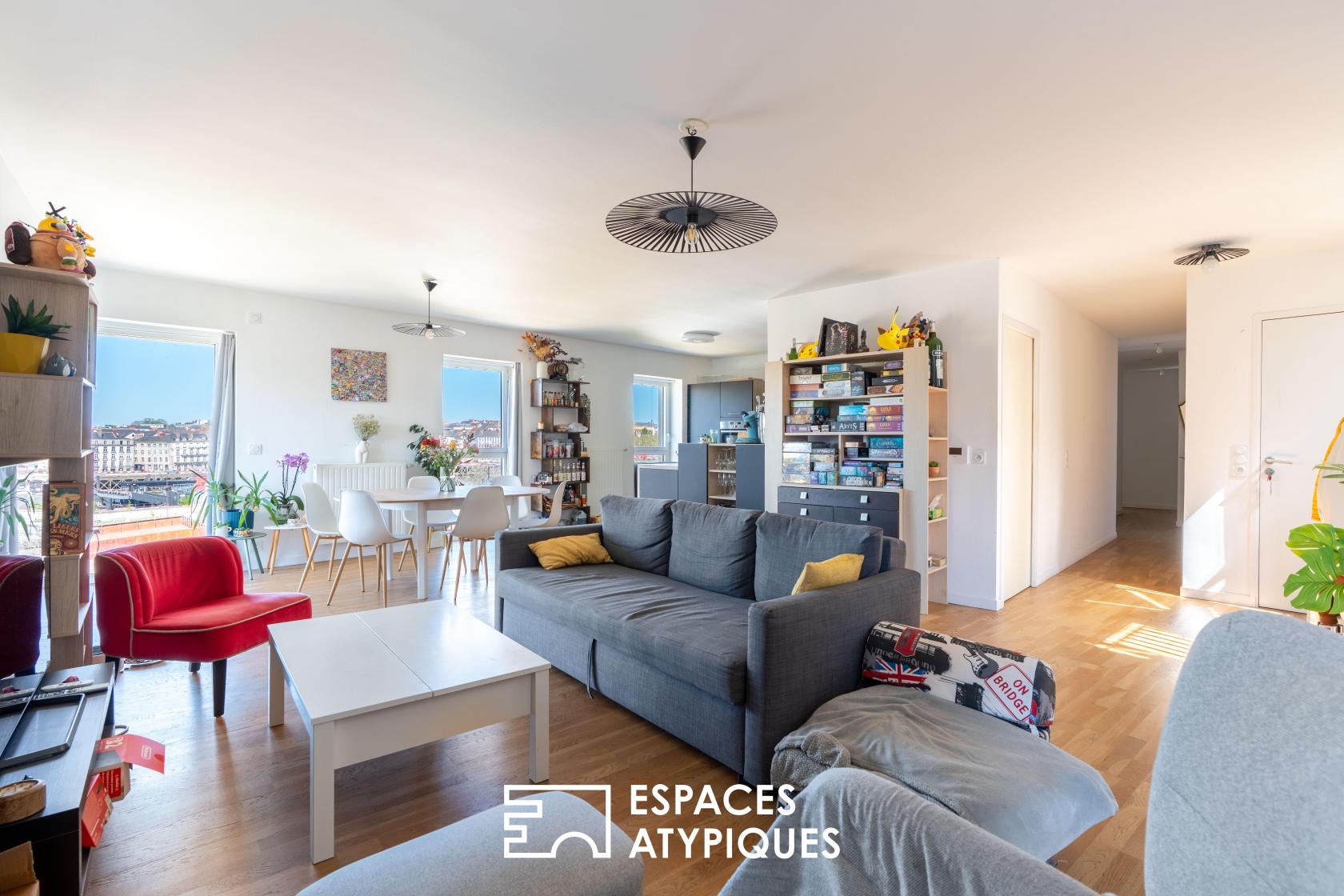 Sa localisation stratégique, son vaste espace de vie et son extérieur panoramique en font un lieu de vie singulier pour une clientèle en quête de fonctionnalité et de caractère au sein d’un quartier en pleine mutation.