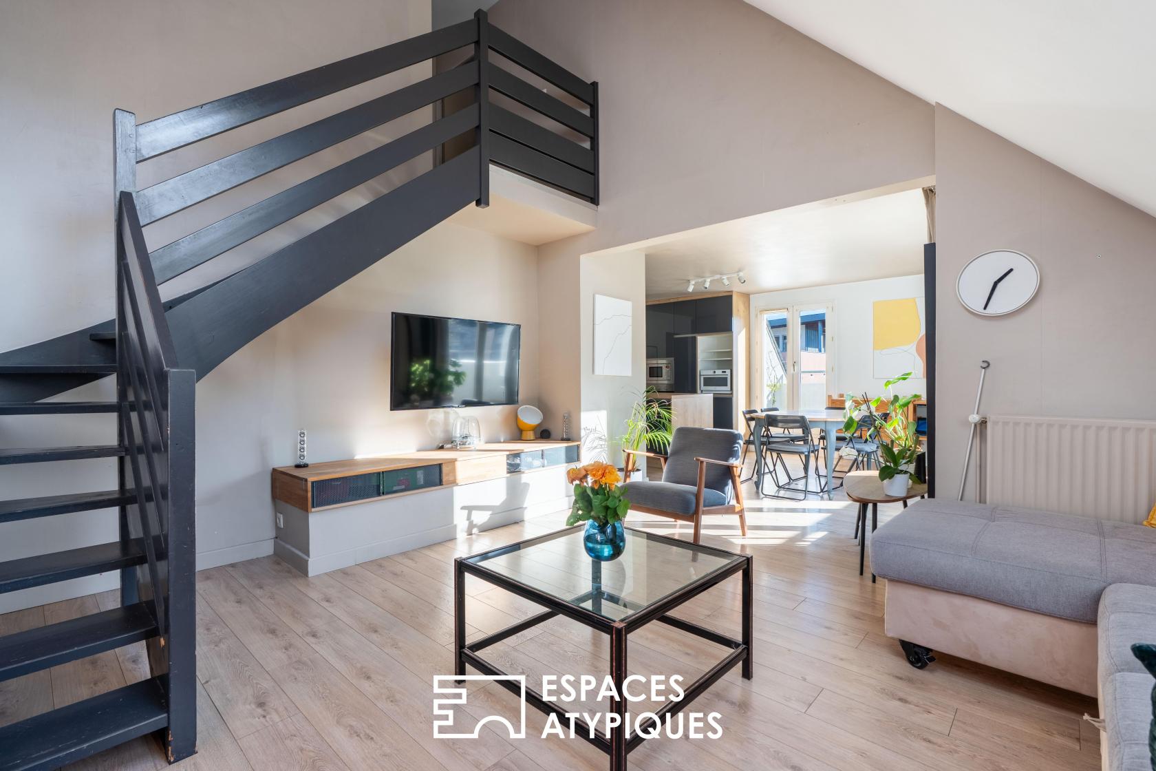 Nantes Île Beaulieu : duplex cathédrale sous les toits avec balcon-terrasse