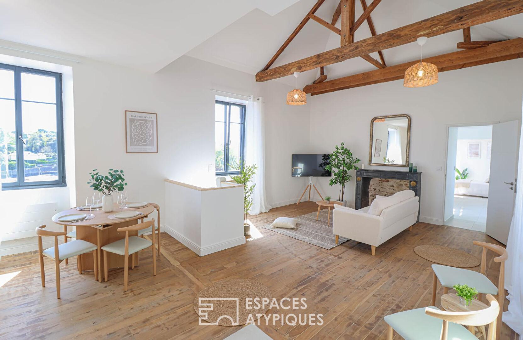 Entre charme, volumes optimisés et situation exceptionnelle, ce duplex au caractère singulier incarne parfaitement l’art de vivre à Pornic, dans un environnement à la fois vivant et apaisant.