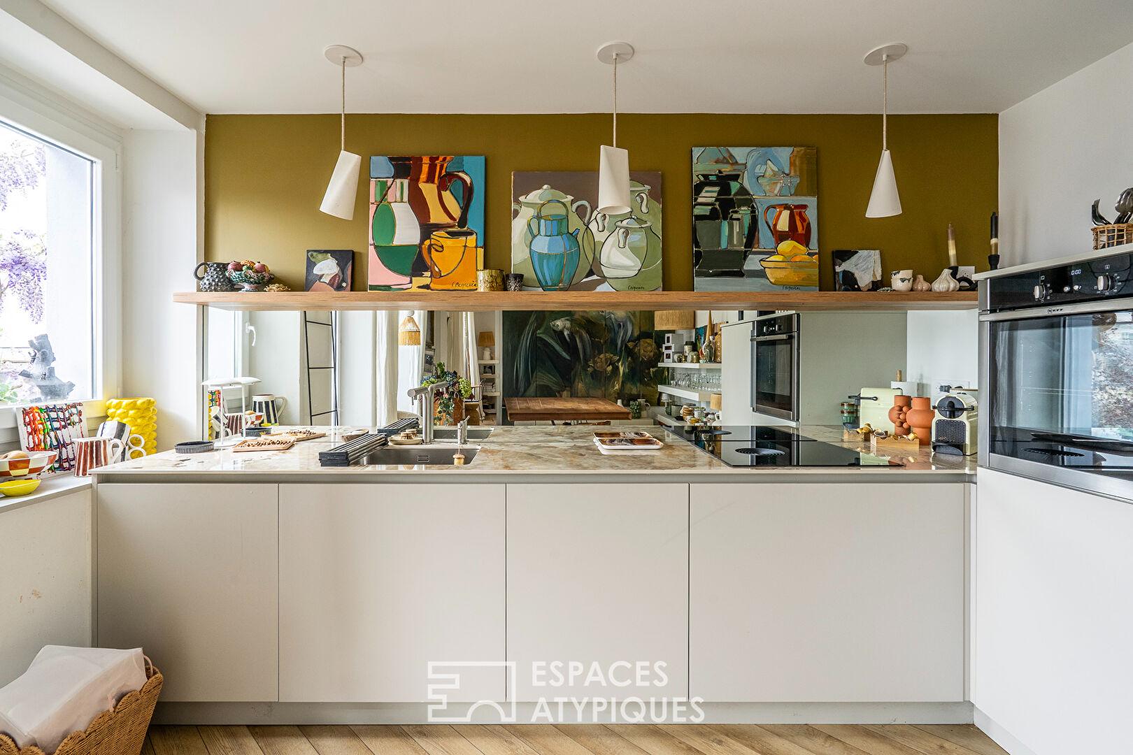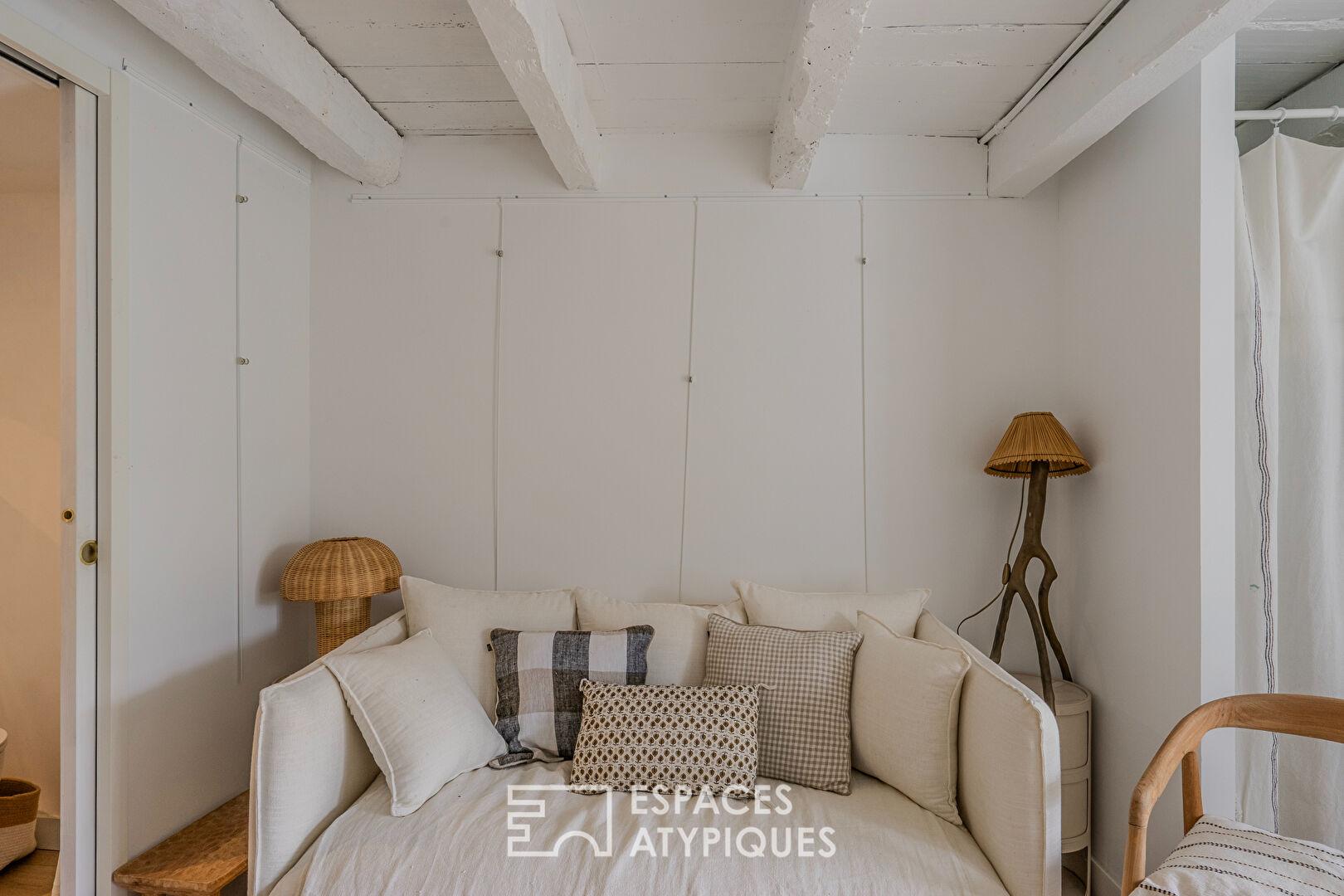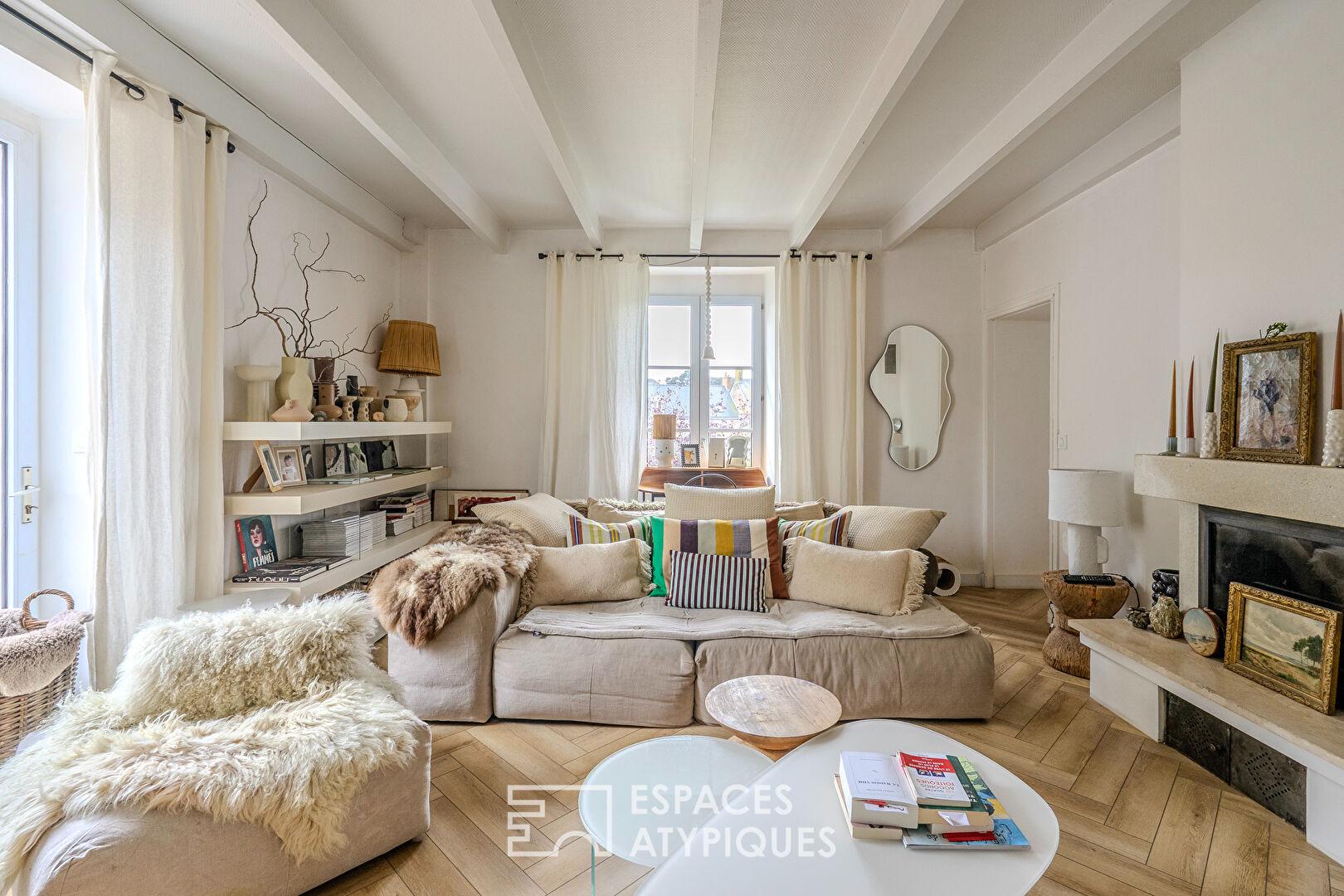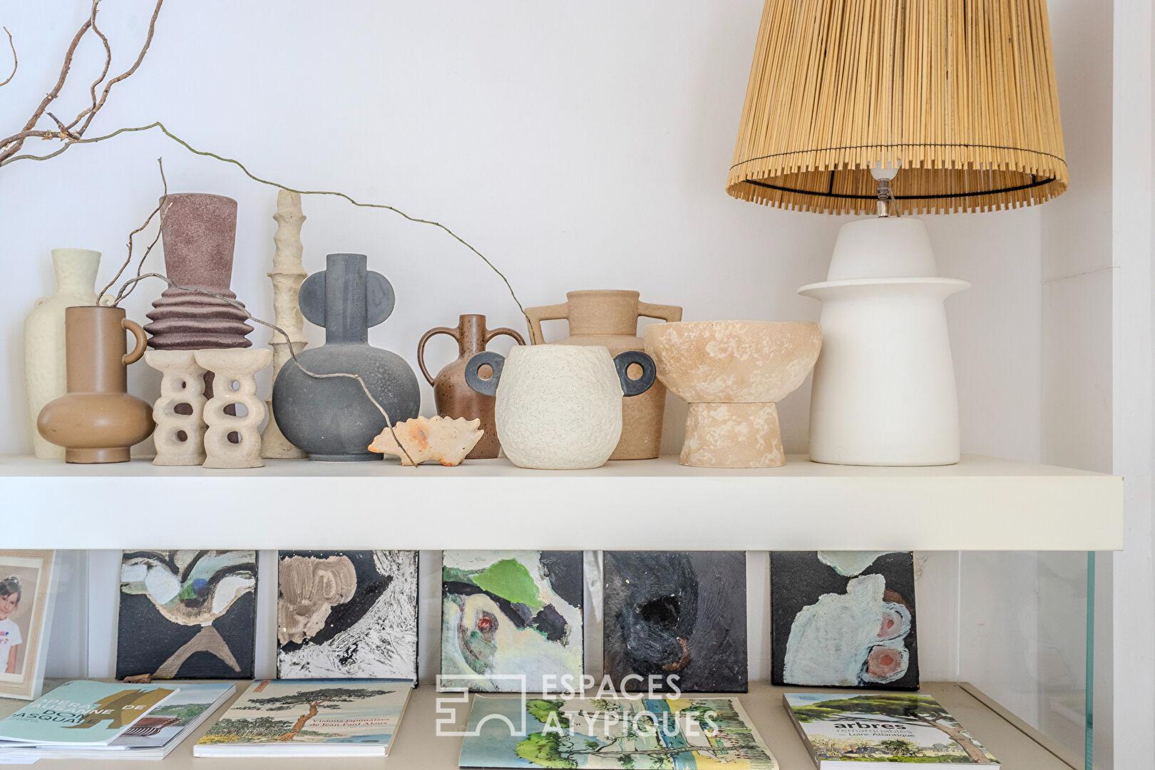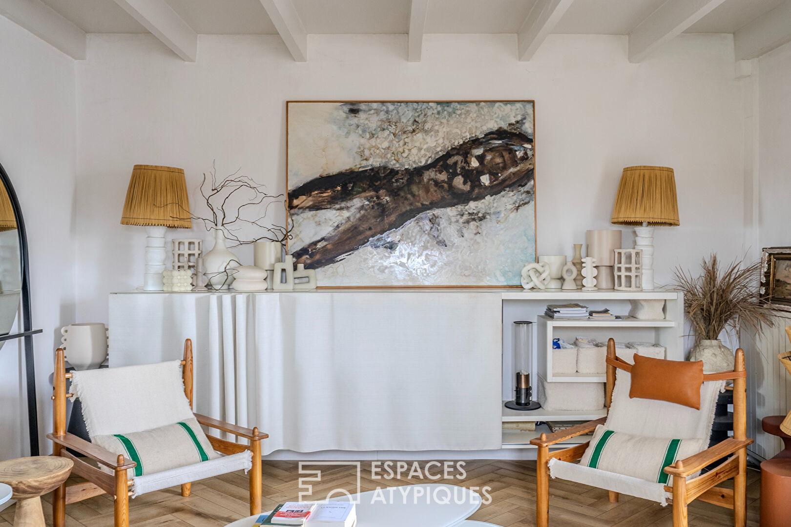Entièrement aménager par une décoratrice d’intérieur, elle révèle une atmosphère chaleureuse où chaque détail a été soigneusement étudié, mêlant matériaux de qualité, harmonie des volumes et lumière naturelle.