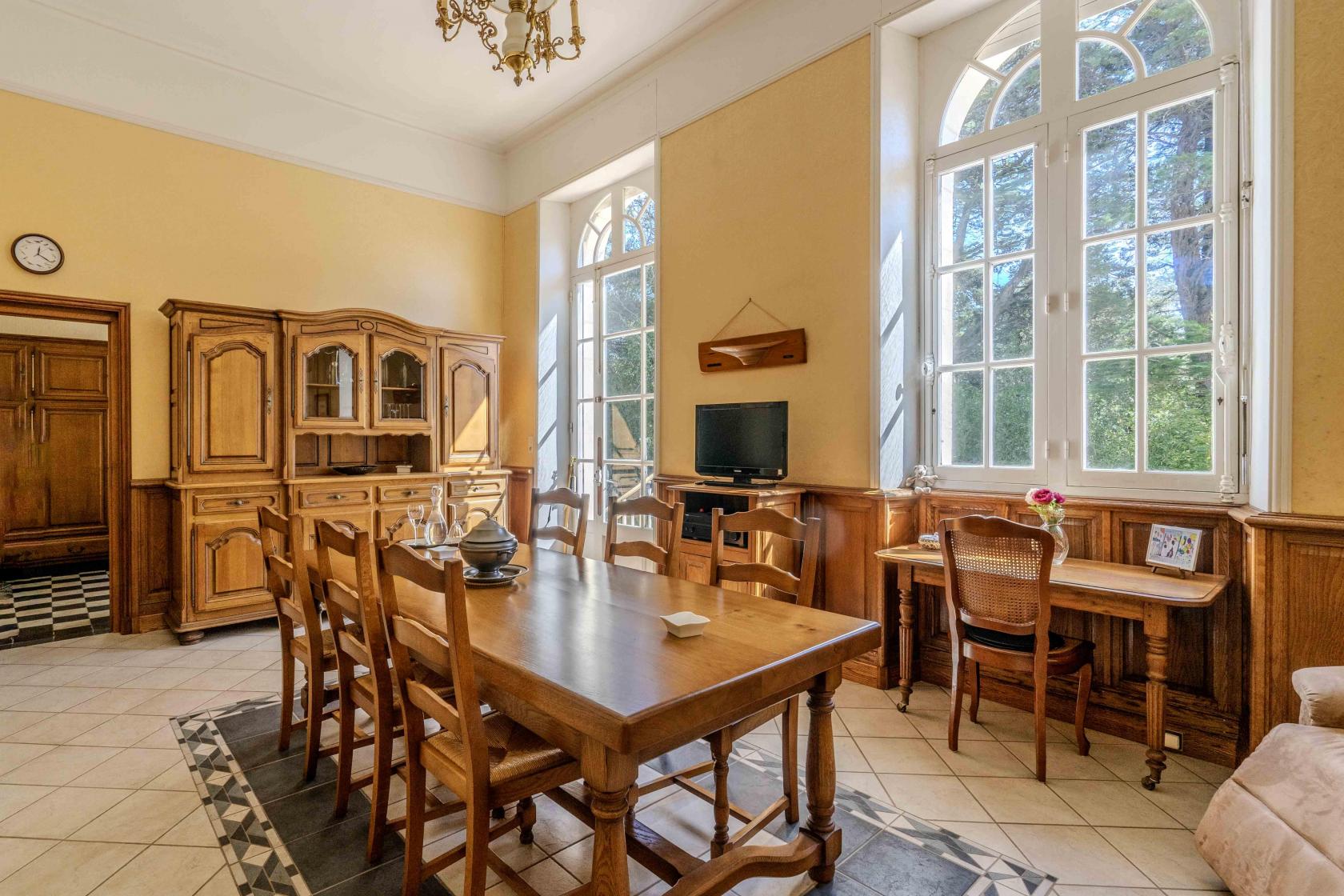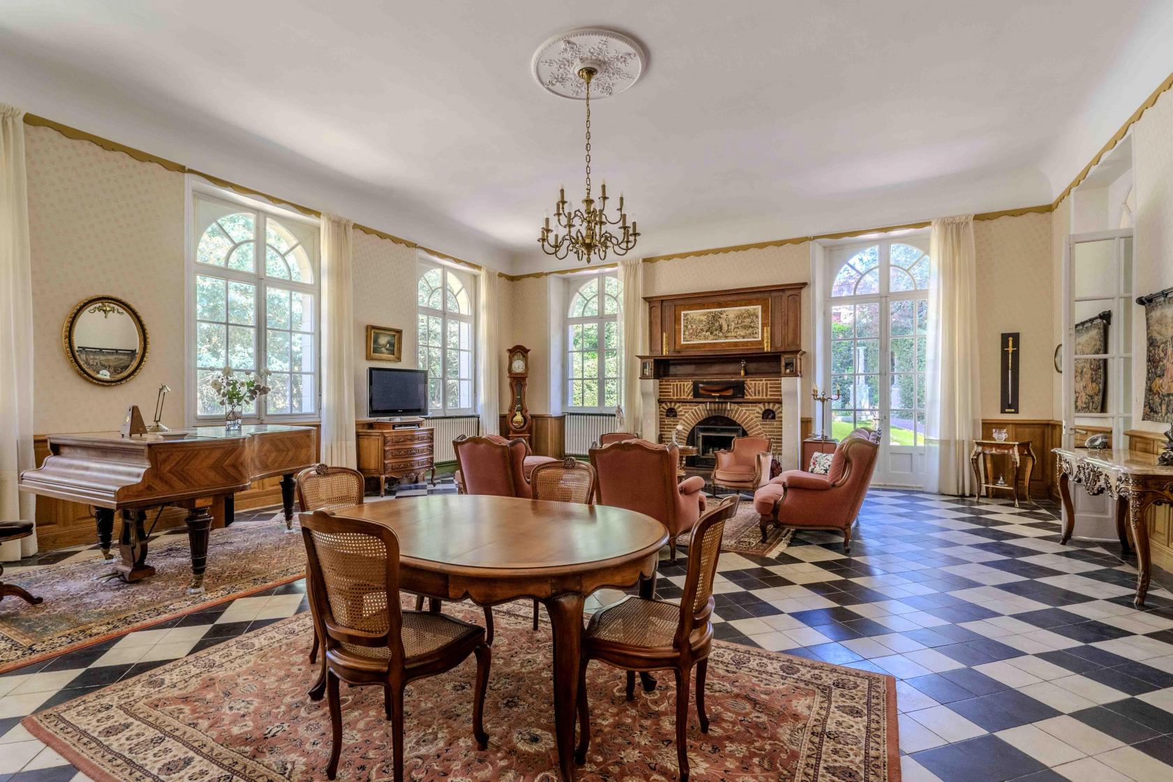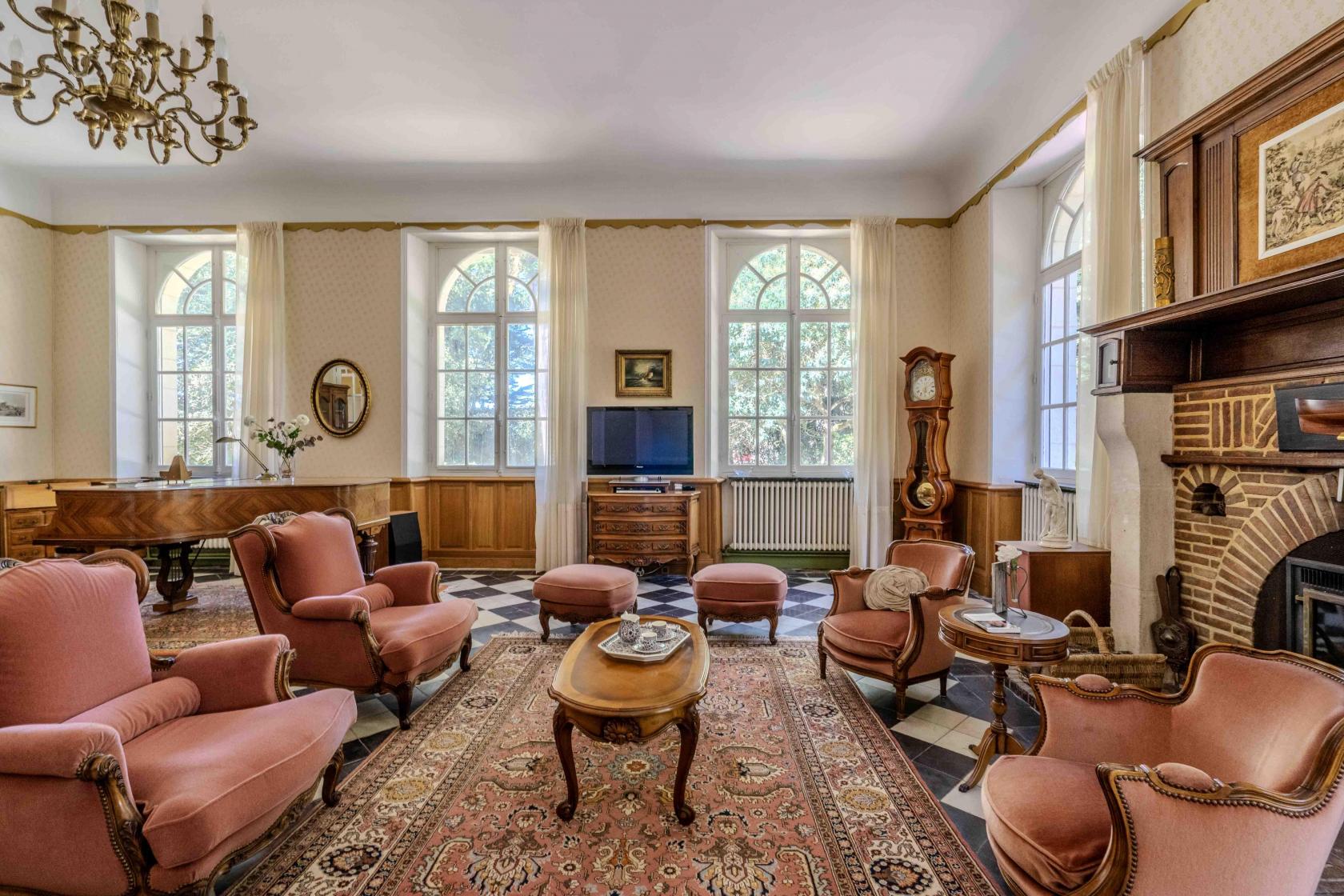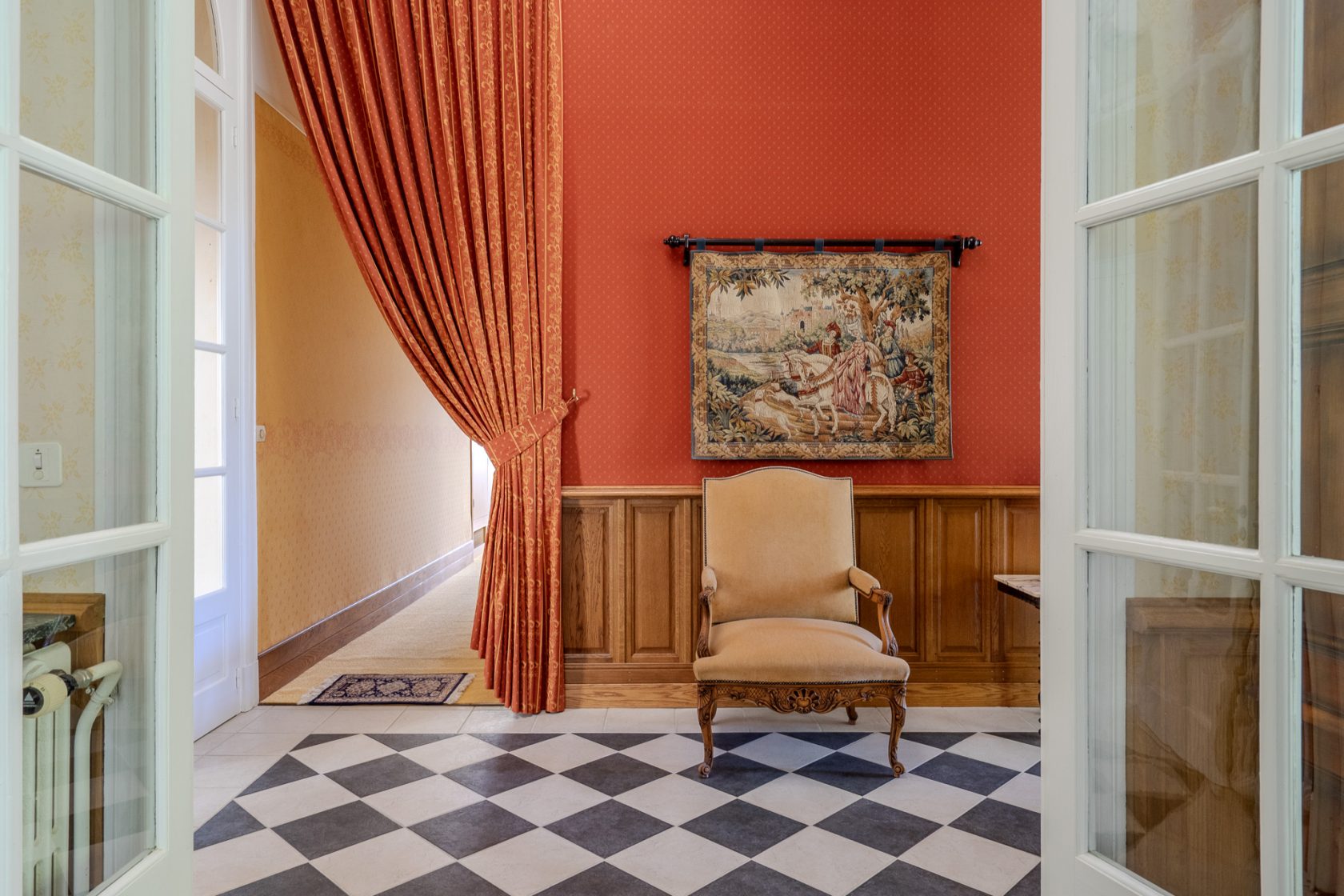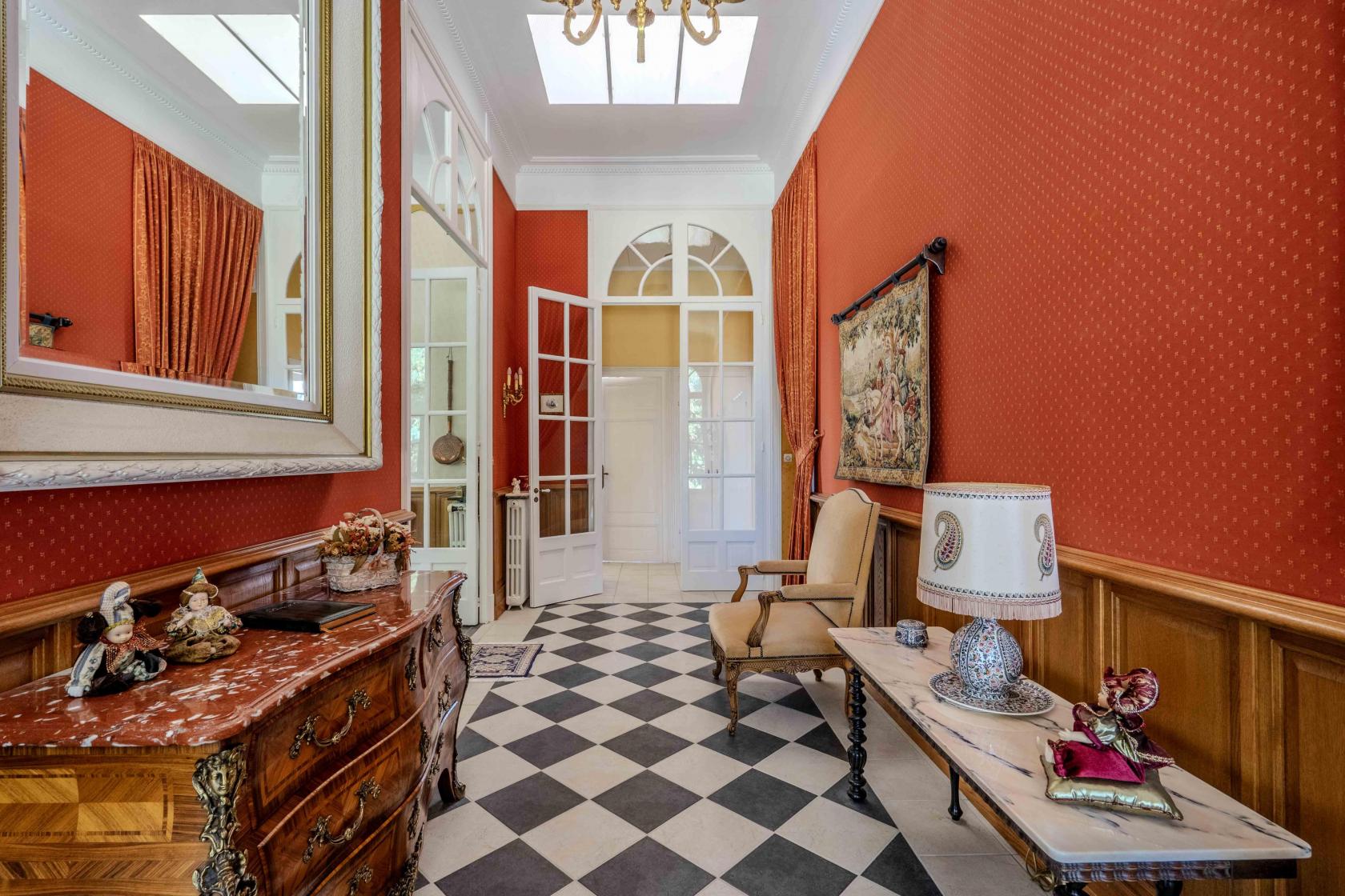 L’entrée, digne de ce nom, donne le ton en vous accueillant dans un espace majestueux. Le salon-séjour, aux dimensions exceptionnelles et aux volumes impressionnants, bénéficie de magnifiques fenêtres d’époque cintrées, baignées de lumière naturelle et offrant une vue imprenable sur le jardin paysager.