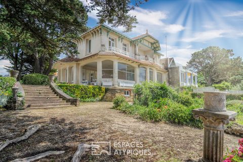 Villa Pornicaise avec sa maison de gardien et son jardin arboré suspendu au dessus de l’océan