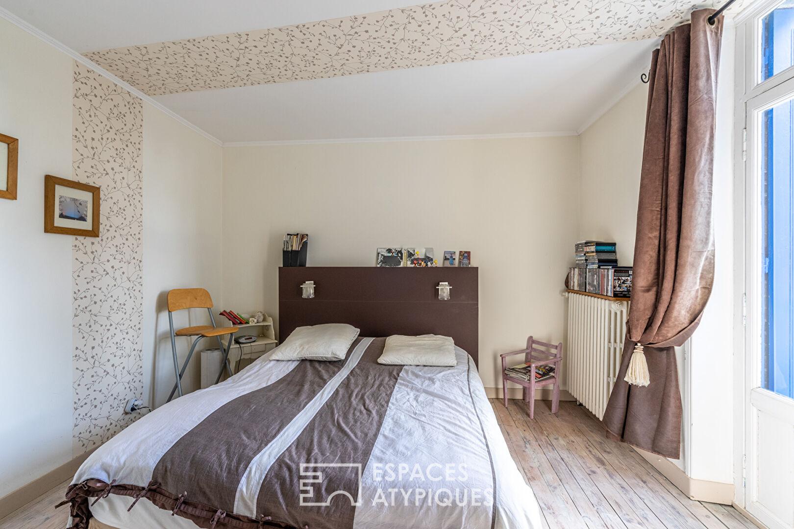 Le rez-de-chaussée surélevé s’ouvre sur une belle entrée lumineuse, qui distribue une première chambre au charme authentique, sublimée par son parquet ancien. Dans le prolongement, un salon attenant à une véranda entièrement vitrée offre un espace de vie tourné vers le jardin. La cuisine indépendante, entièrement équipée, s’articule harmonieusement avec le salon, créant un ensemble convivial et fonctionnel. Ce niveau bénéficie également d’une salle de bains et de toilettes indépendantes.