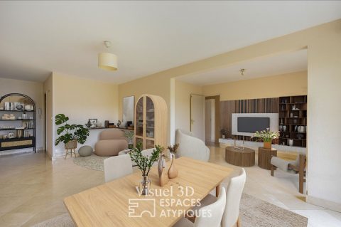 Deux terrasses, dont une d’environ 14m2 longe la pièce de vie, offrant des vues panoramiques sur le parc environnant.